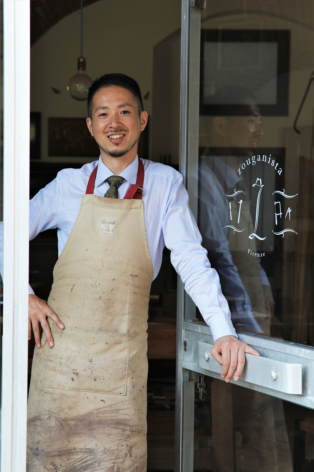 フィレンツェに渡ったのは2007年。以前から憧れていた家具職人を目指してのことだった。師事した家具職人のレナート・オリヴァストリ氏は、昔のフィレンツェの家具職人がそうだったように象嵌のスペシャリストでもあった。欠損パーツの復元や磨き直し、接着など、修復の仕事の一環として象嵌を学んでいくなかで、ベースの木材に「象り」、異なる木材を「嵌める」木象嵌の仕事に、次第に興味を抱くようになっていったという。