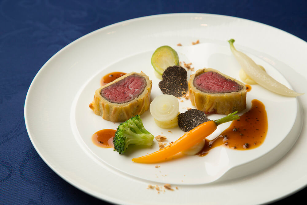 メインディッシュ:北海道産和牛フィレ肉とトリュフのウェリントン風パイ包み焼き