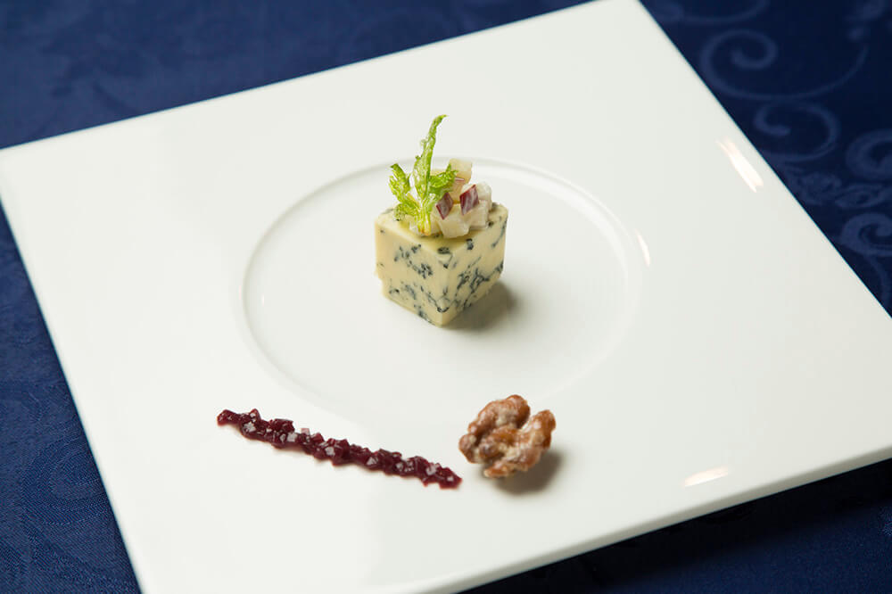 五品目:スティルとんとポートワインジェリー セロリとリンゴのサラダ添え