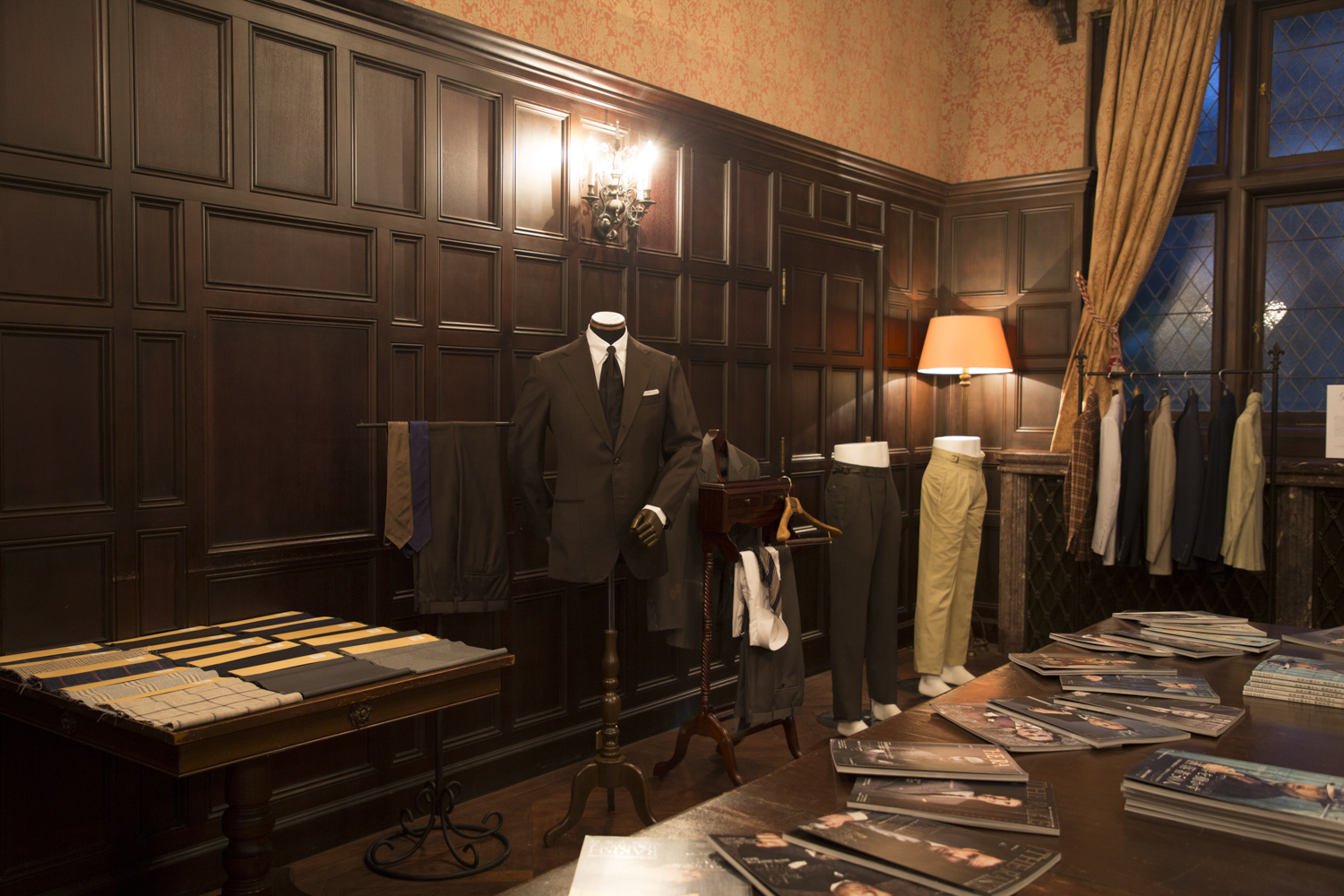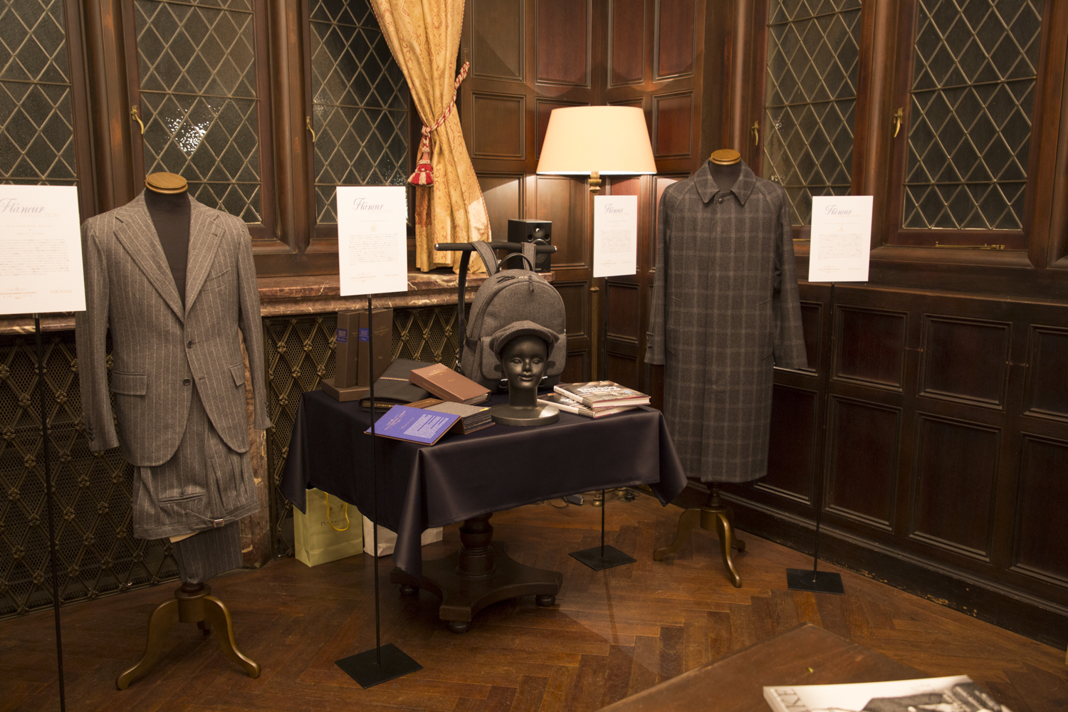 特別展示のひとつ。トルソーにかかっているのは、ラ スカーラやリヴェラーノ&リヴェラーノのスーツ。いずれもイセタンメンズにて購入可能なアイテムだ