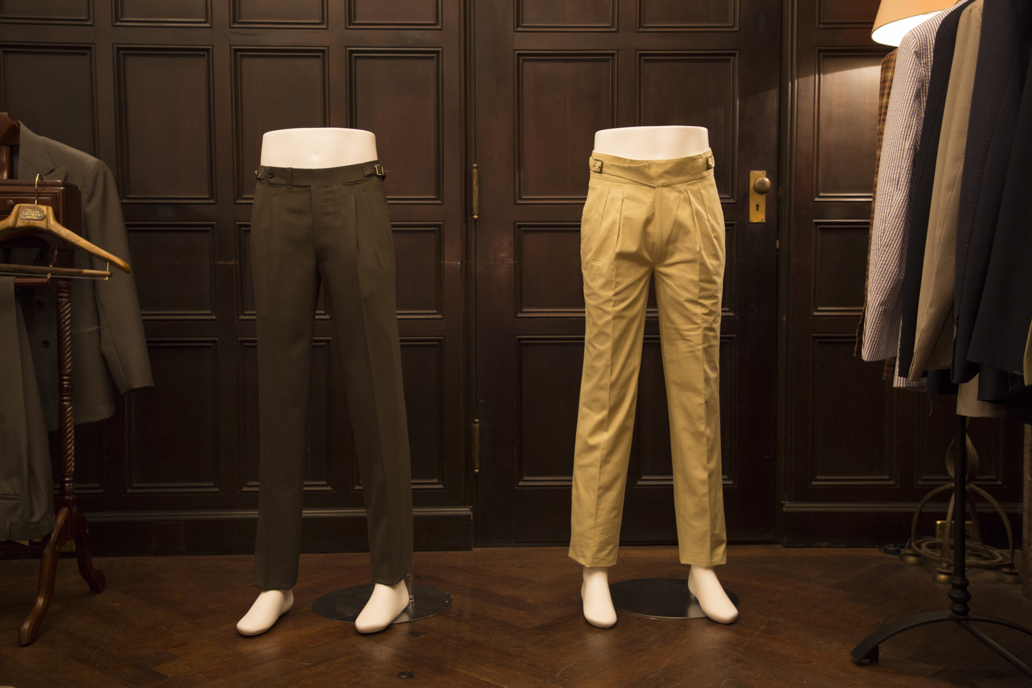 アンダーソン&シェパードとアンブロージのトラウザーズ。どちらもイセタンメンズで購入可能