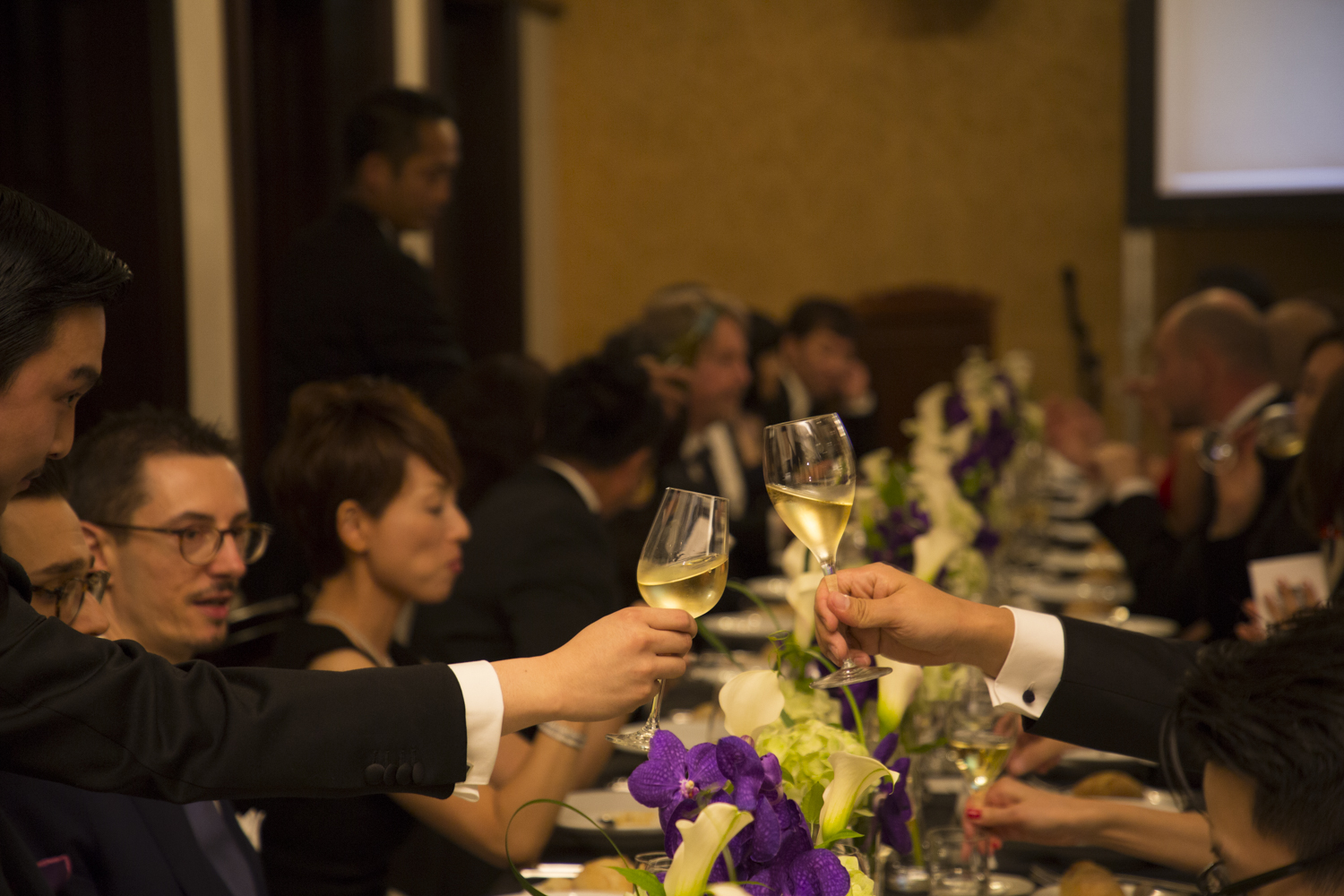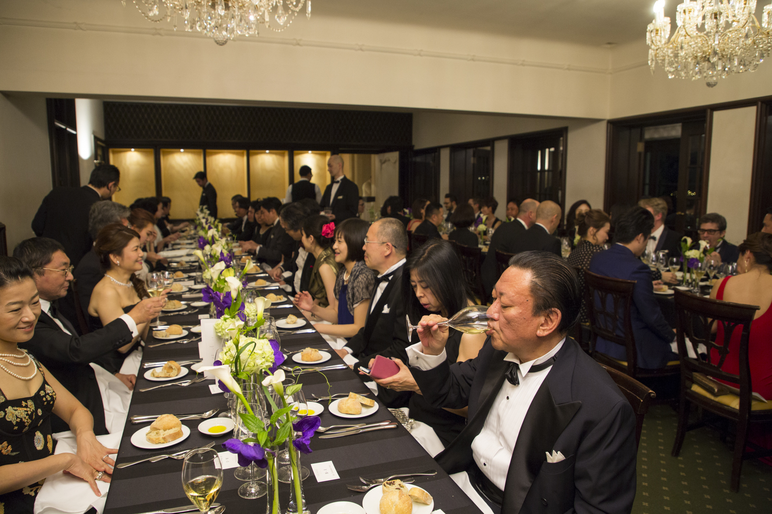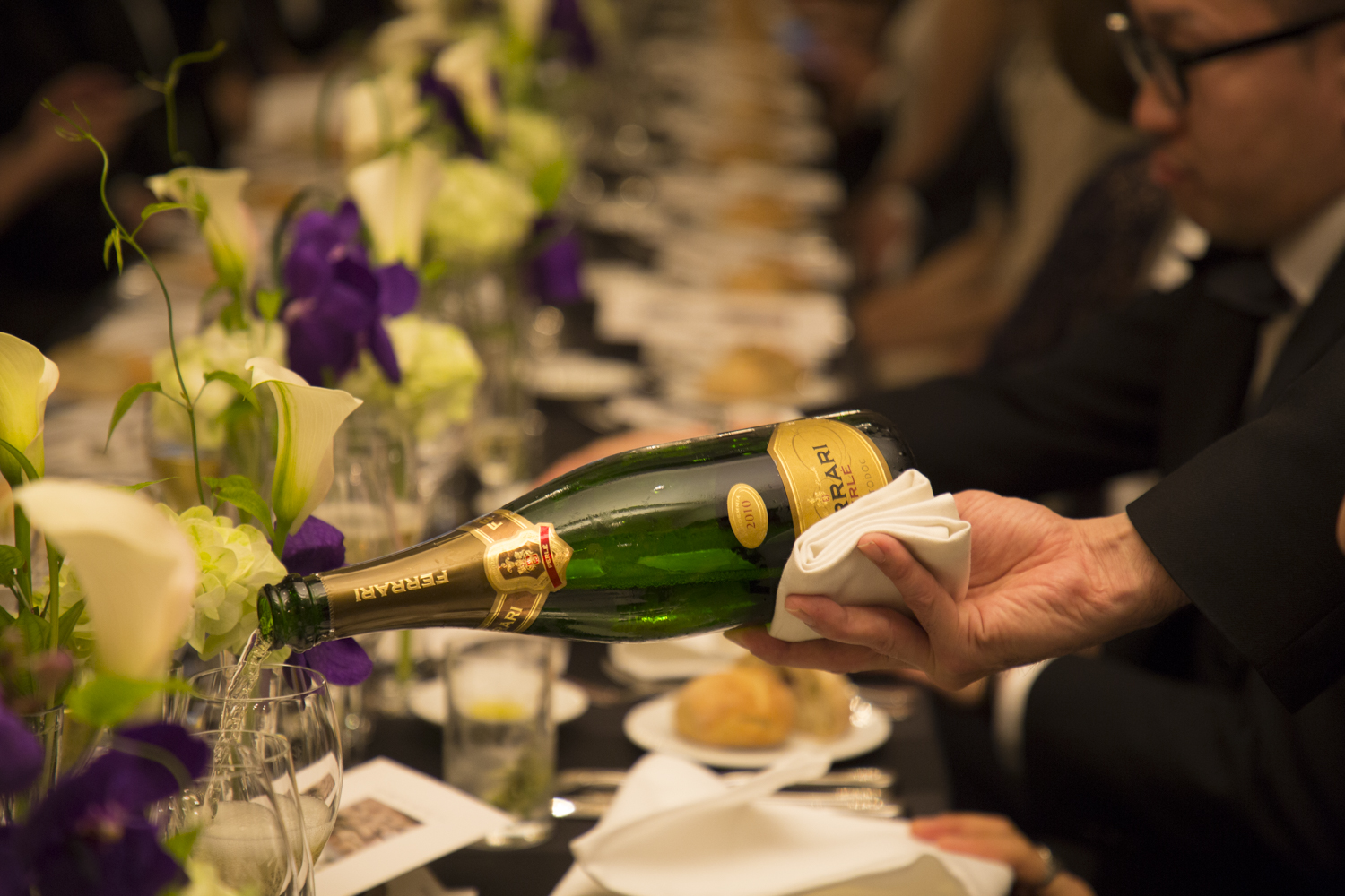 乾杯には、フェッラーリの「フェッラーリ・ペルレ・ミレジム」が振る舞われた
