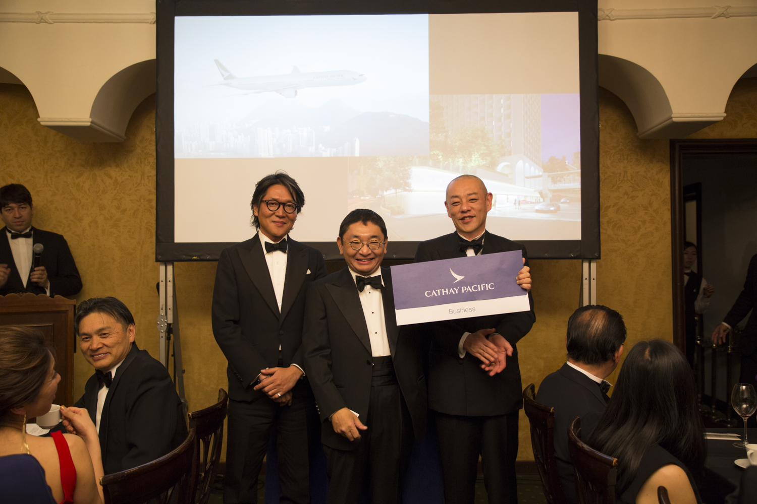 キャセイパシフィック航空の香港往復ビジネスクラスのエアチケットと、香港島にブランドニューホテルとして15年ぶりにオープンしたラグジュアリーホテル「ザ・マレーニッコロホテル香港」の2泊3日宿泊券を手にした三堀さん