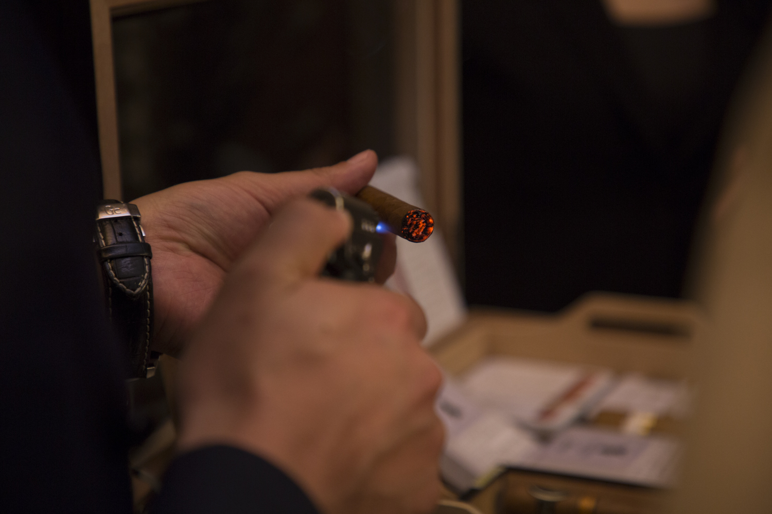 歴史あるシガールームにてシガーを嗜むゲストたち