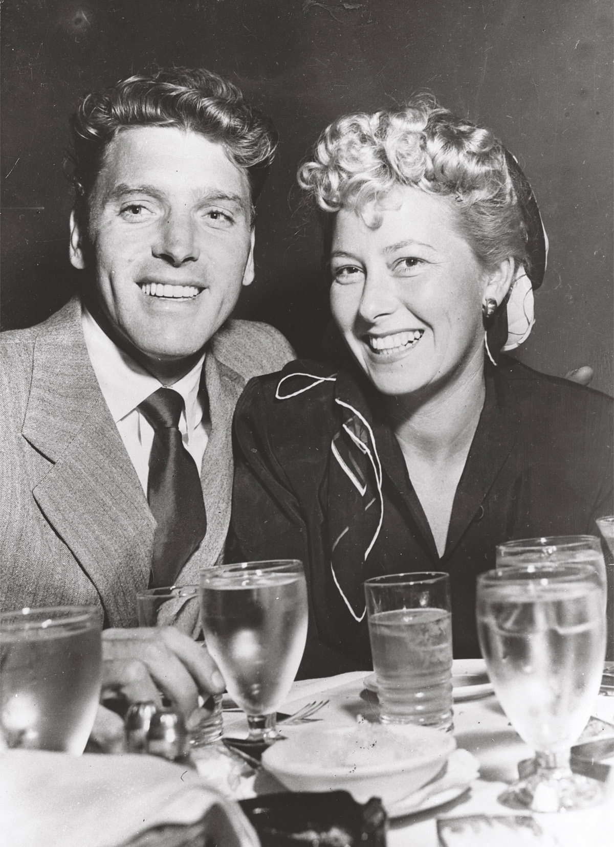 カリフォルニア州ハリウッドのレストラン「ロマノフズ」にて、妻ノーマとともにいるランカスター(1958年)。
