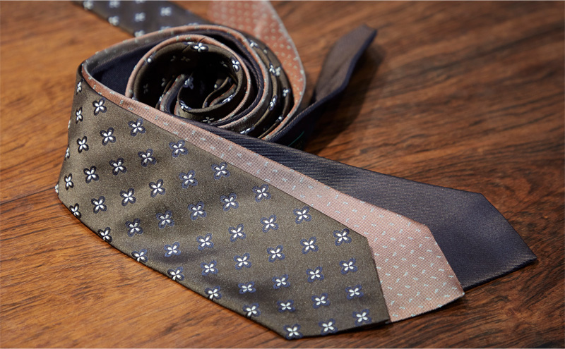 タイはコントラストの控えめなブラウン系を好む。左:昨季のホリデー&ブラウン、中央:¥37,400 Atto Vannucci、右:¥24,200 Franco Bassi / both by Beams House Marunouchi(ビームス ハウス 丸の内 Tel.03-5220-8686)
