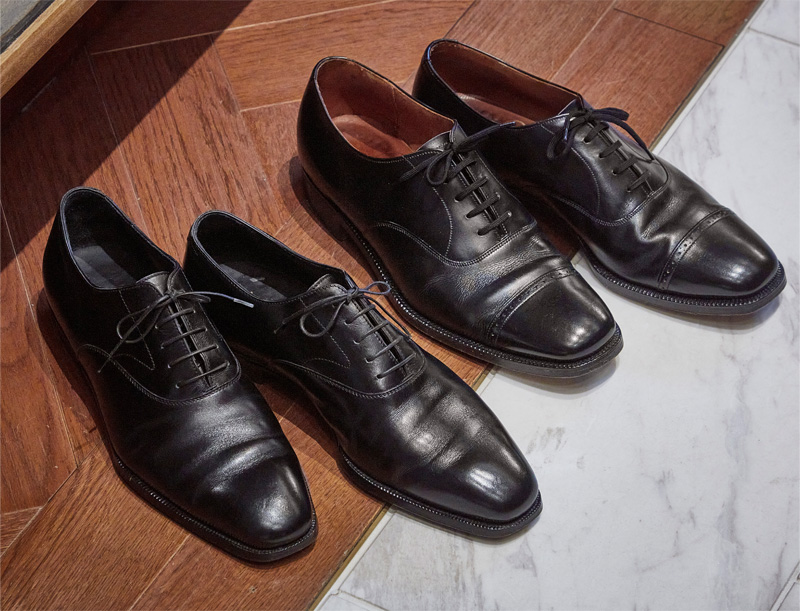左は定番として展開しているエンツォ ボナフェの「ディ コジモ」。英国靴を好む間瀬氏だが、イタリア靴でありながら英国靴的な薫りもあってお気に入り。知人からデッドストックで譲ってもらったというチャーチのパンチドキャップトゥ。インソックの表記が2都市(London, New York)の貴重なオールド品だ。