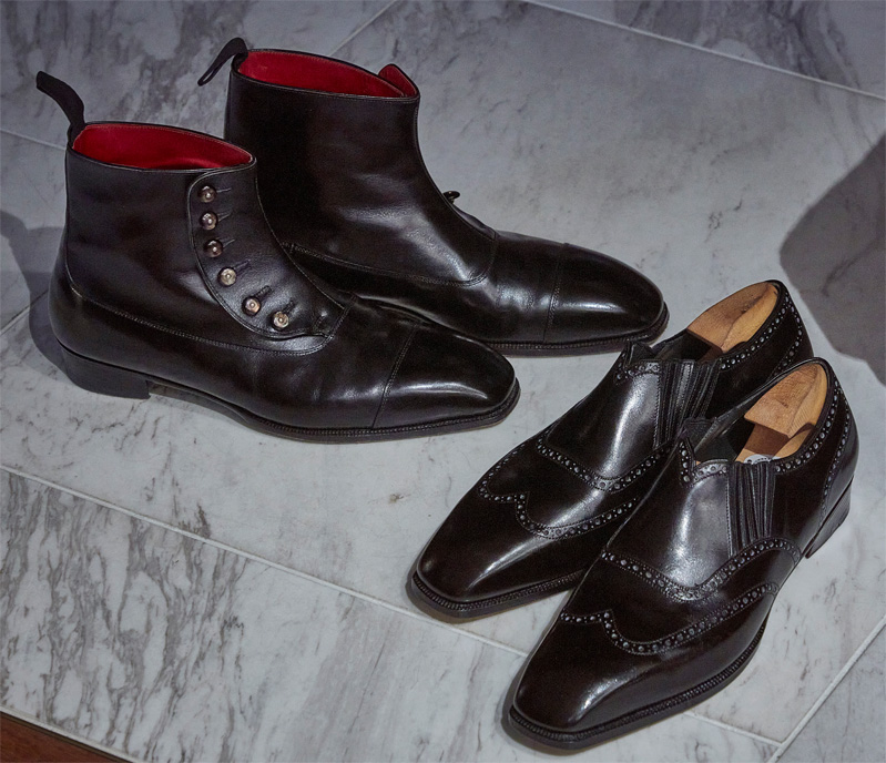 かつてビームスは、ジョージクレバリーのビスポーク受注会を定期的に開催していた。伊藤氏も結構な数をオーダーしてきた。特にお気に入りなのが、写真のボタンアップブーツとサイドエラスティックシューズだ。