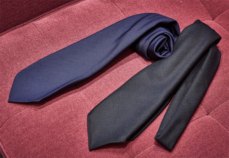スカーフのような柔らかさが、このブランドでしか出せない独特のエレガンスを生むセッテピエゲのタイ。左:ウールモヘアのタイ¥44,000、ウールタイ¥44,000 both by Atto Vannucci / Beams House Marunouchi(ビームス ハウス 丸の内 Tel.03-5220-8686)