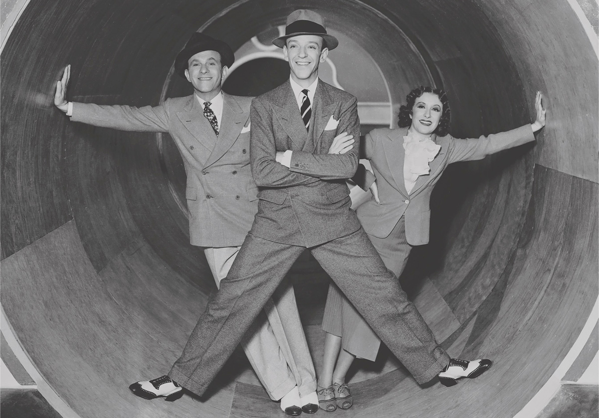 映画『踊る騎士』(1937年)でフレッド・アステアと共演するジョージ・バーンズとグレイシー・アレン。