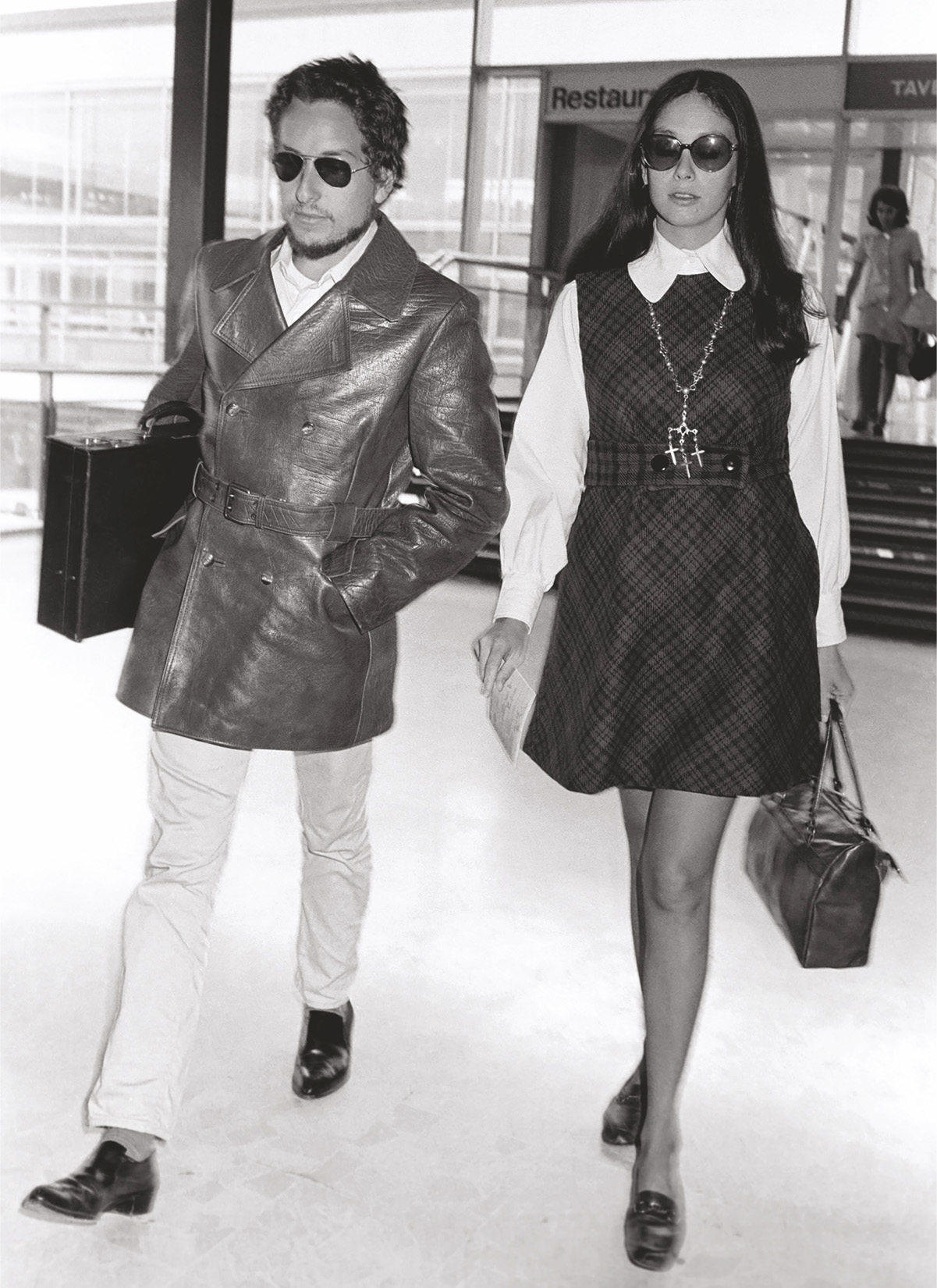 ボブ・ディランが妻サラとともに英国ヒースロー空港に到着したところ。