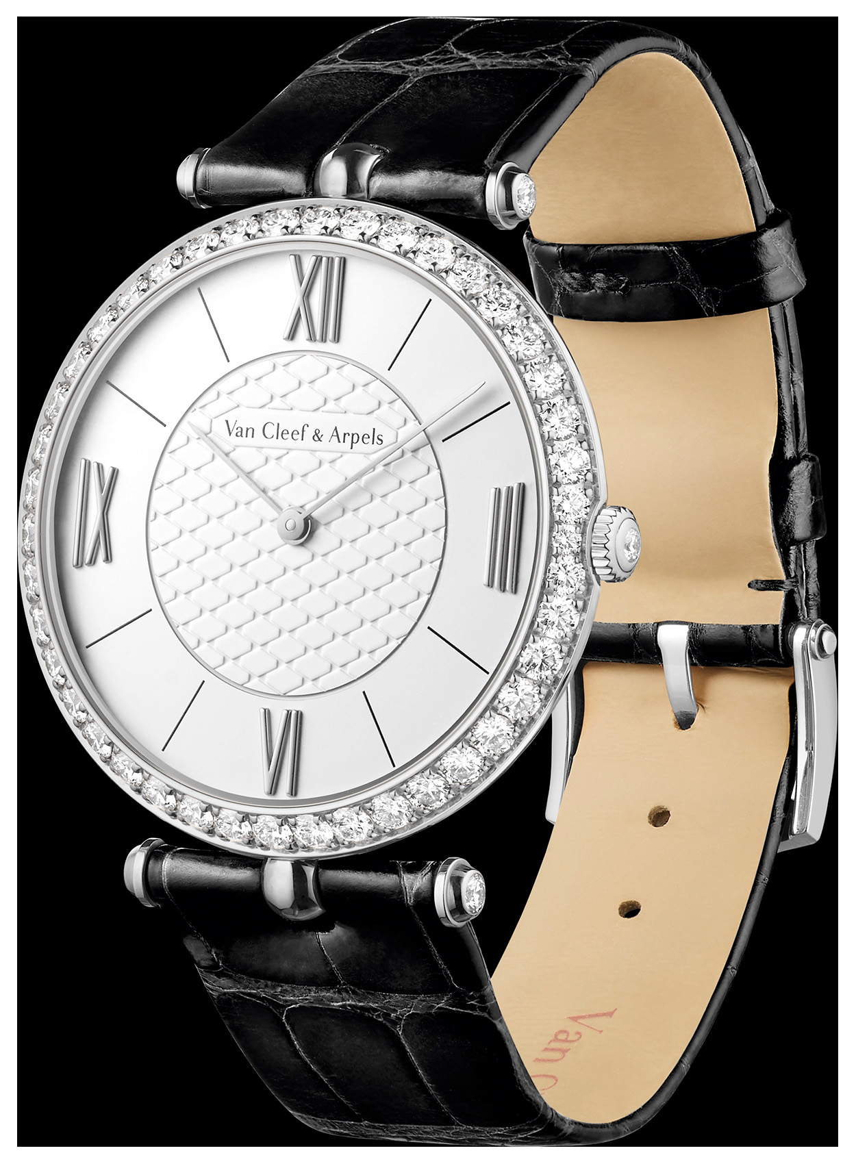 ヴァン クリーフ&アーペルの「ピエールアーペル」は、薄型2針の王道ドレスウォッチ。ベゼルにダイヤがセットされても、あくまで控えめな印象である。
