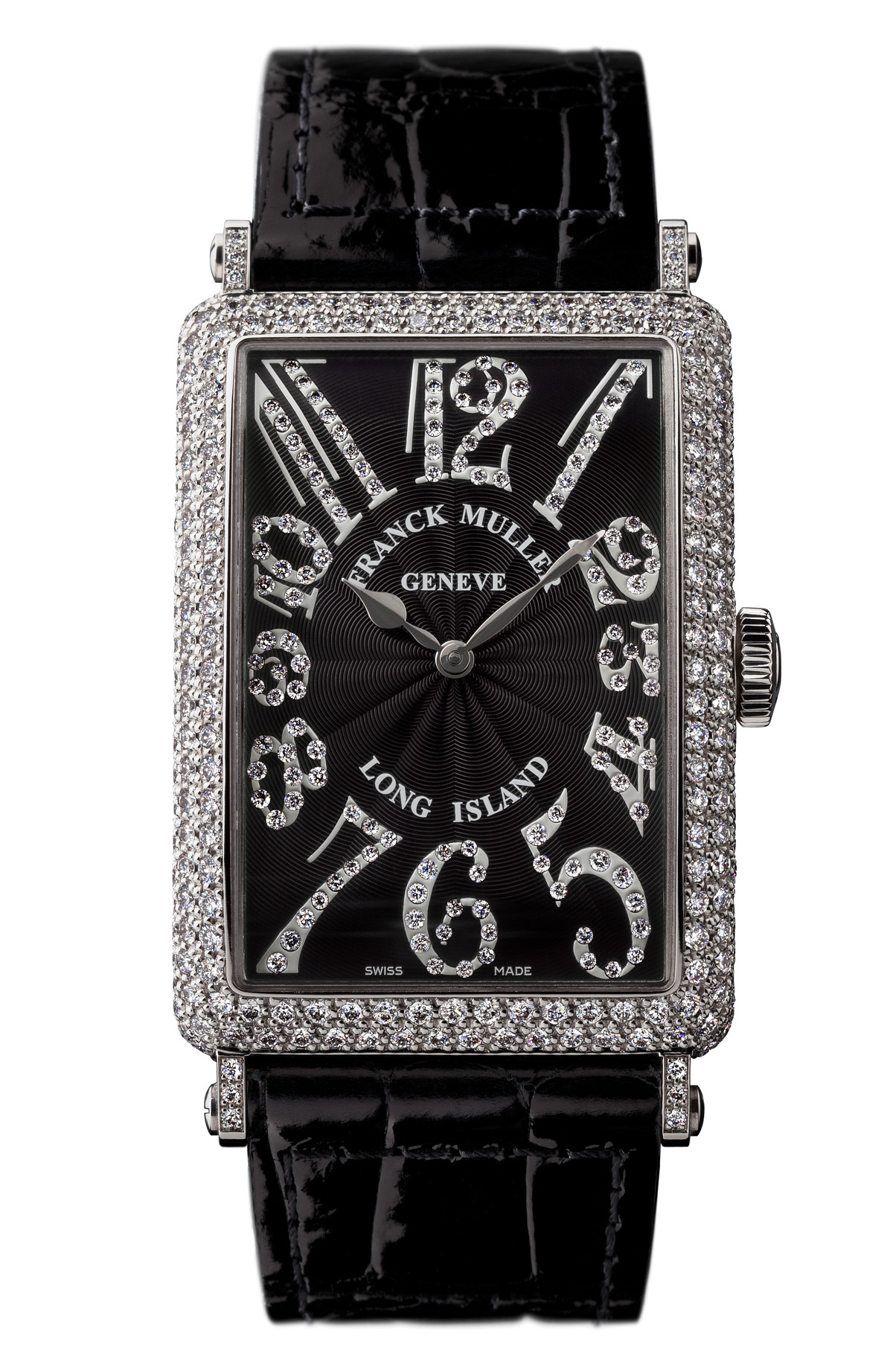 フランク ミュラーは、製造拠点であるウォッチランドにジュエリー専用工房を構えている。「ロングアイランド」のジェムセッティング仕様は、メゾンのアイコンであるビザン数字にもダイヤが煌めくが、クラシカルなスタイルとブラックダイヤルで、シックな雰囲気にまとめあげた。