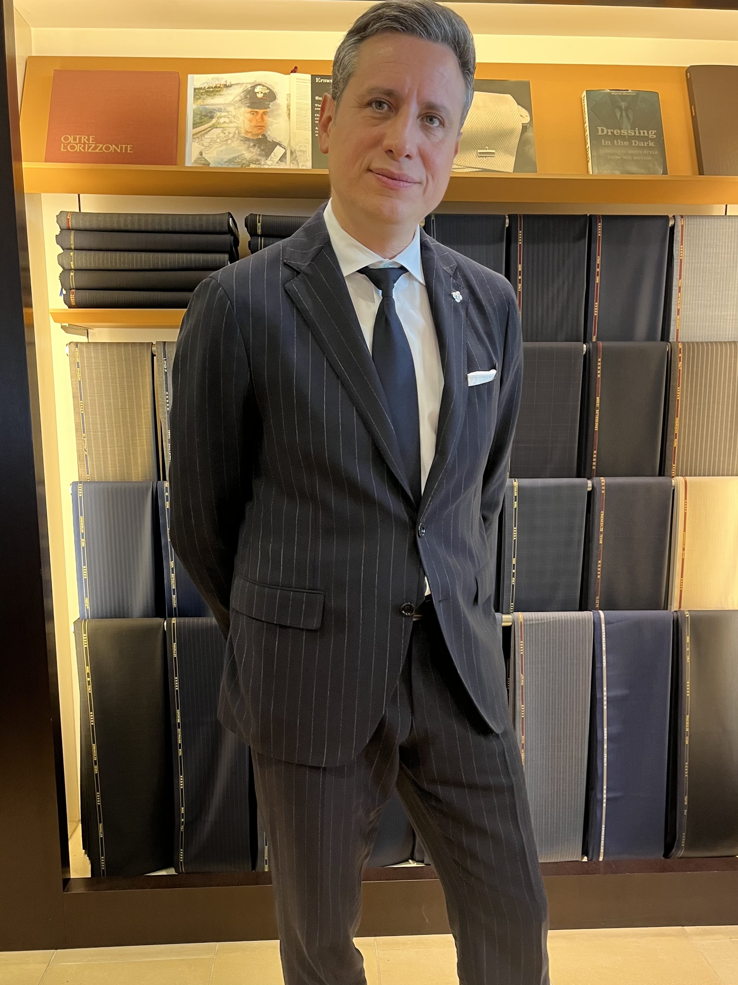 「良い服は人生を変える」と信じる人には、必ず“その瞬間”があります。アンジェロ氏にとって、それは名門ボッコーニ大学の卒業論文発表の日でした。教授陣の前で最終試験として論文を口頭発表するという、イタリアの伝統的なセレモニー。その日、彼は普段よりフォーマルなスーツとネクタイを身にまといました。