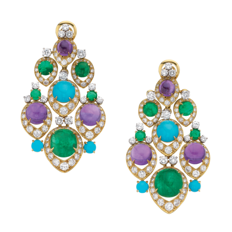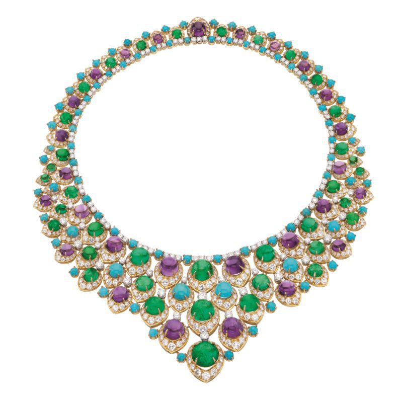 イタリア国外では一度も展示されたことのない、ゴールドとプラチナにダイヤモンドとシトリンをあしらった1940年頃のブレスレット、「セブン・ワンダーズ」と呼ばれるプラチナにダイヤモンドと7つの壮麗なエメラルドをあしらった1961年の伝説的なネックレス、1969年頃に制作された唯一無二の傑作「コンバーチブル・ソートワール=ブレスレット」など貴重な作品の数々がお目見えする。また現代の3名の女性アーティスト、ララ・ファヴァレット、森万里子、中山晃子による、それぞれの色彩についての考察に基づく作品も展示される。