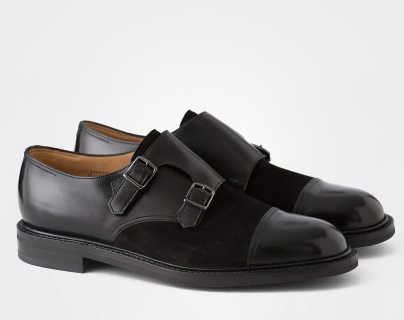新店舗には、これまで以上にゆったりと寛ぎながらパーソナルオーダーができる、半個室仕様のサロン空間を新設。店内中央にはステンレス製のカプセル什器が配置され、引き出しのなかには、さまざまなレザーサンプル・カラーチャート・ソール・バックル等のパーツが並ぶ。モデルやアーカイブコレクションから好みのスタイルをパターンオーダーできる「バイリクエスト」に加え、ブランドの原点でもあるフルオーダー「ビスポーク」で特別な一足を注文することもできる。