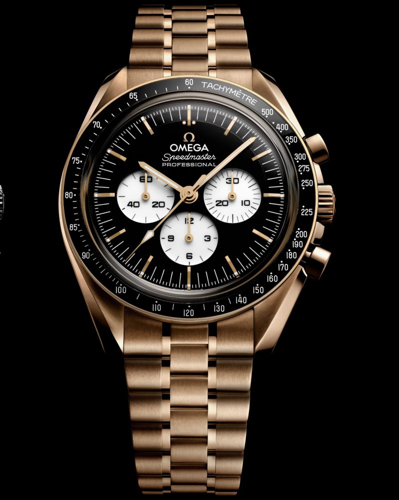 ケース径は42mm。ステンレススティール製と、オメガ独自の18Kムーンシャイン™ゴールド製の2モデルがラインナップされ、どちらもコーアクシャル マスター クロノメーター キャリバー3861を搭載。NASA公式の宇宙時計として名を馳せた伝説的ムーブメントの血統を継承している。
