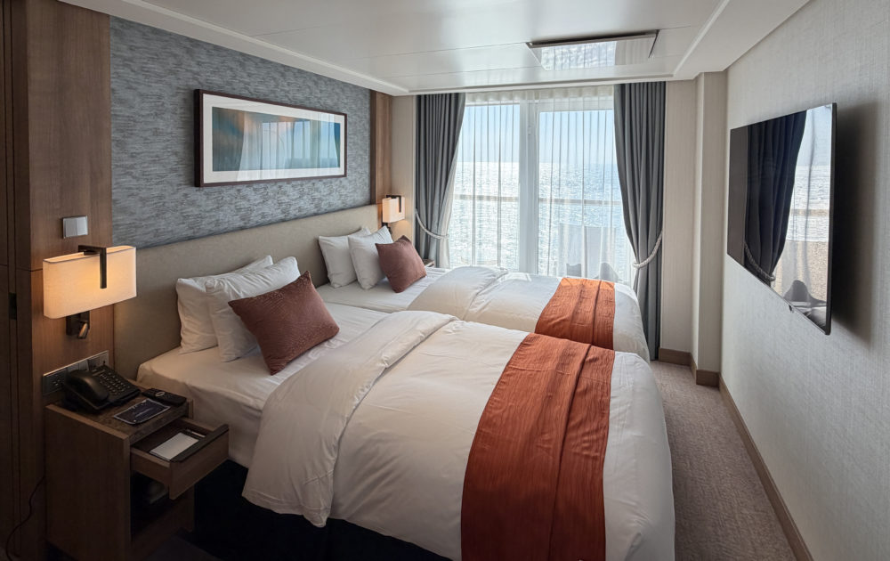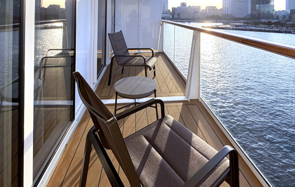 飛鳥IIIには全381室の客室があり、114㎡を誇るロイヤルペントハウスから、おひとり様向けのソロバルコニー(全22室)まで、多彩なカテゴリーが揃っている。ひとり乗船の方も数多くいる。