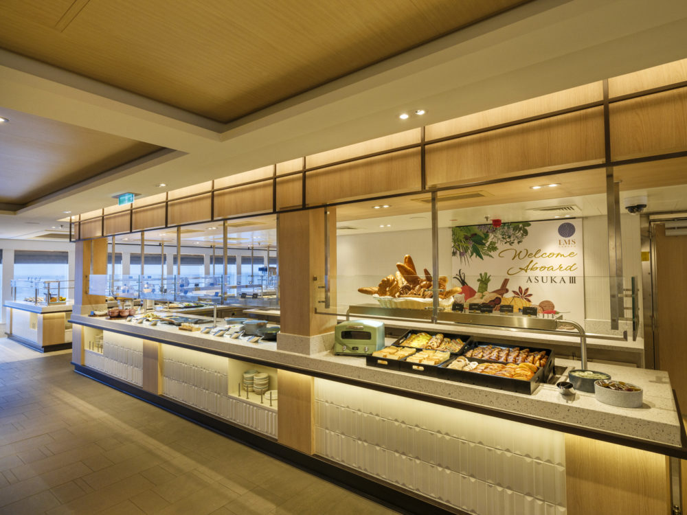 飛鳥III最大の魅力が「食」にあることは、異論を待たない。6つのレストランの他にバーやラウンジを備え、それぞれが趣向を凝らしたメニューを提供している。これぞ洋上の「食の殿堂」である。