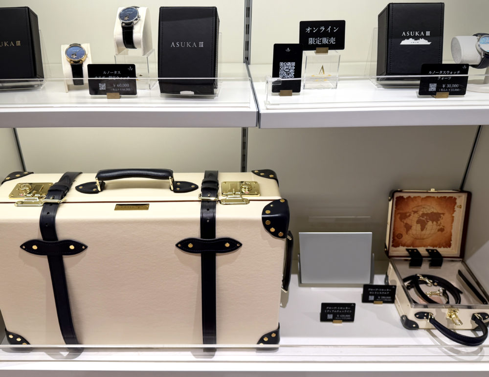 船内ショッピングも充実している。ファッションとジュエリーのブティック、飛鳥クルーズオリジナルグッズを販売しているショップなどが軒を並べている。英国ブランド、グローブ・トロッターと飛鳥クルーズのコラボレーション・アイテムが売られており、思わず食指が動いてしまう。