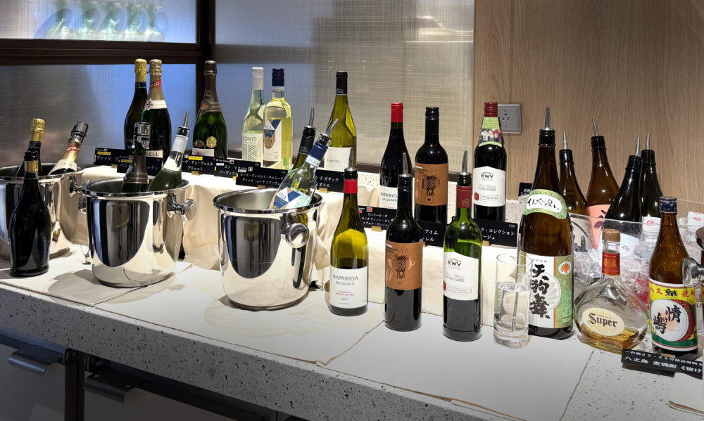 朝から二種類のスパークリングワインに加え、赤・白ワインが自由に楽しめる。夕方以降はビール、各種ワイン、日本酒、スピリッツまで飲み放題になる。空港のビジネスクラス・ラウンジや、ホテルのエグゼクティブ・ラウンジを、さらにパワーアップしたものと考えればわかりやすい。