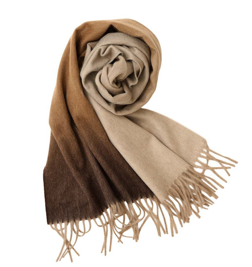 次に「ニュアンス(Nuance)」は、色の移ろいで選ぶシリーズです。色が途切れずに滑らかに移っていくグラデーションが核になります。柄で主張するのではなく、色そのものがデザインとして立ち上がってくる感覚です。巻き方で見える色の面積が変わるので、同じ一枚でも印象が変わります。シンプルな装いに奥行きを足したい方、色で空気感を作りたい方には、「ニュアンス(Nuance)」にはとてもいい入口になるのではないでしょうか。。