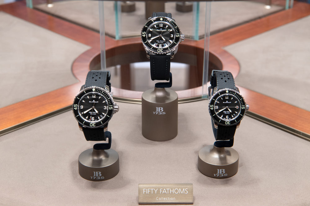 新作の発表にあわせて、ブランパン ブティック 銀座にて展示イベントが開催された。会場では女性水中写真家のジェイド・ホクスバーゲンによる海洋写真が空間を彩り、幻想的な海の世界を体感できるような演出が施された。また、フィフティ ファゾムスのさまざまな現行モデルも並び、コレクションの魅力を目の当たりにできる場となった。