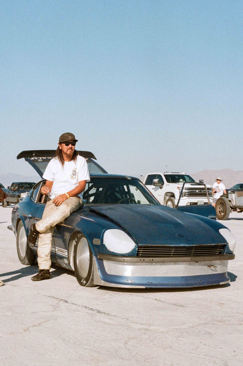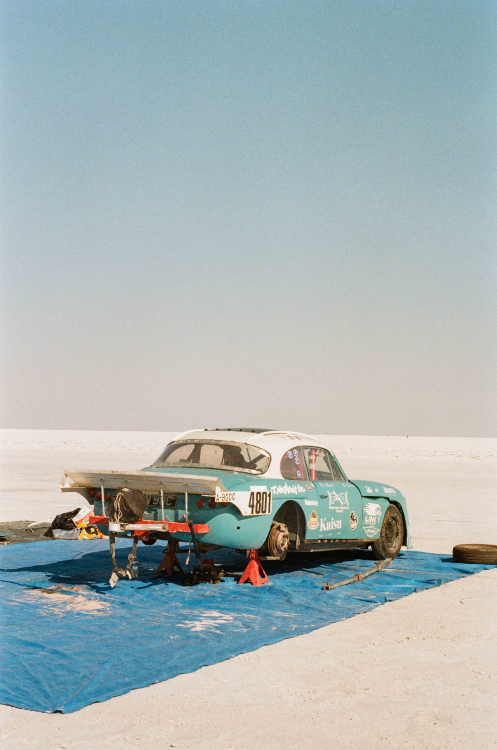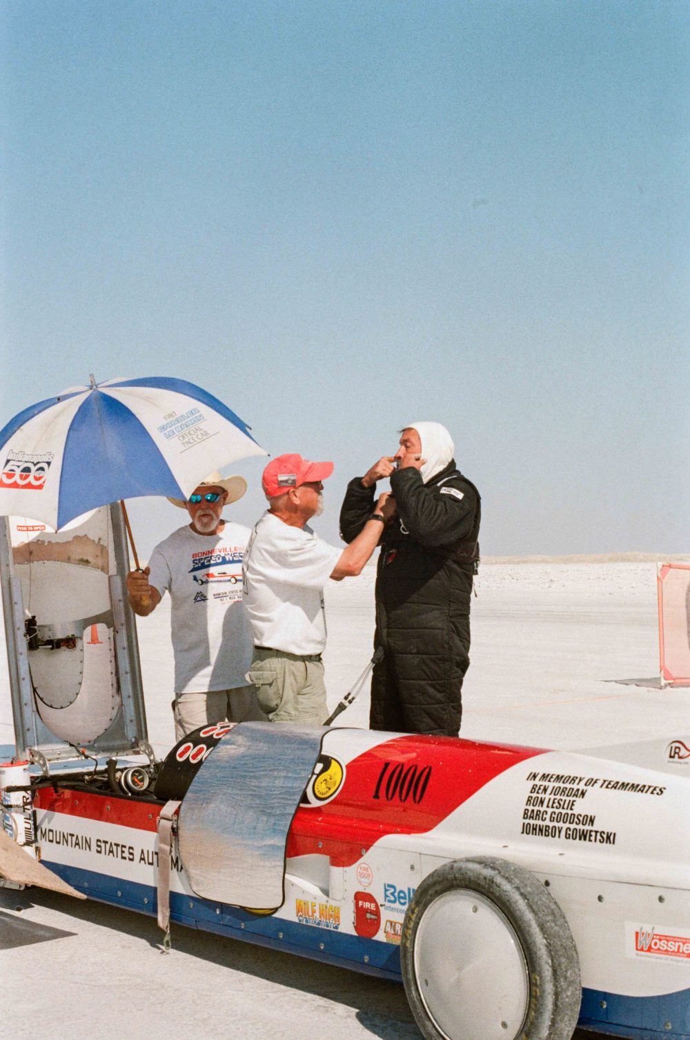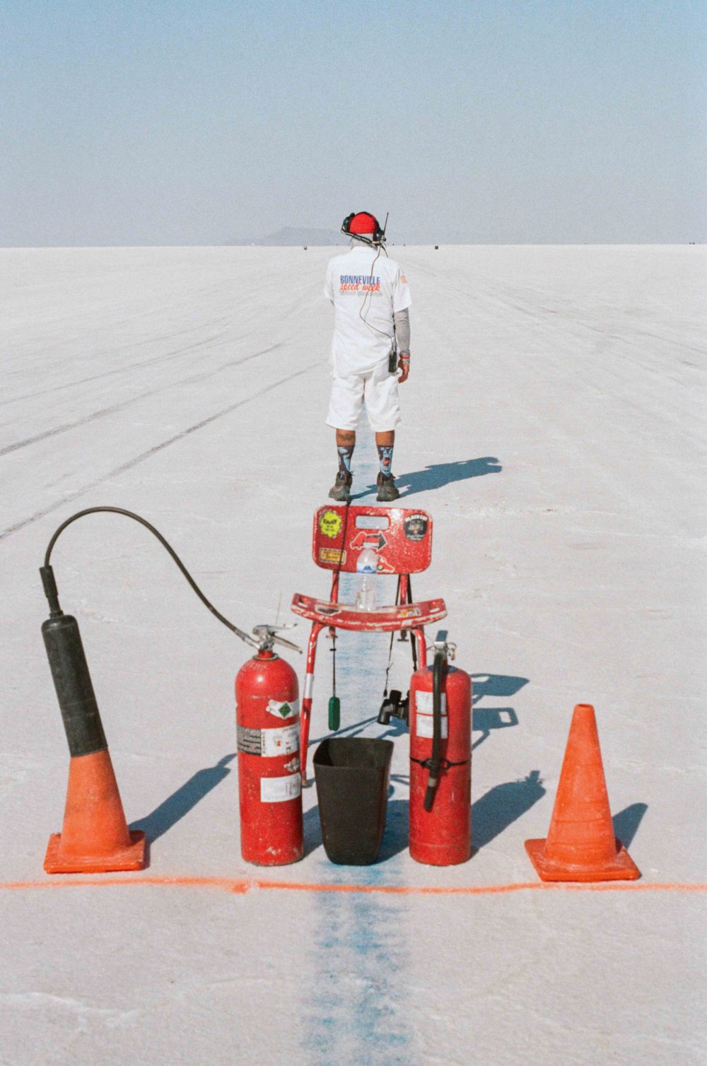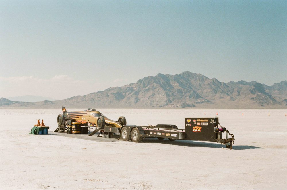 スピードウィーク3日目の朝、私は会場に到着した。毎年およそ300台もの参加車両がこの塩平原に集結し、速度記録の更新を目指す。そこには多種多様なマシンが並ぶ。流麗なボディを持つハンドメイドのストリームライナーから、大幅に改造されたロードカー、轟音を響かせるトラック、そしてモーターサイクルまで。