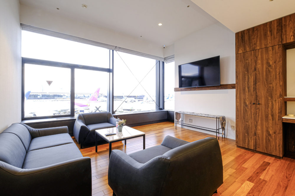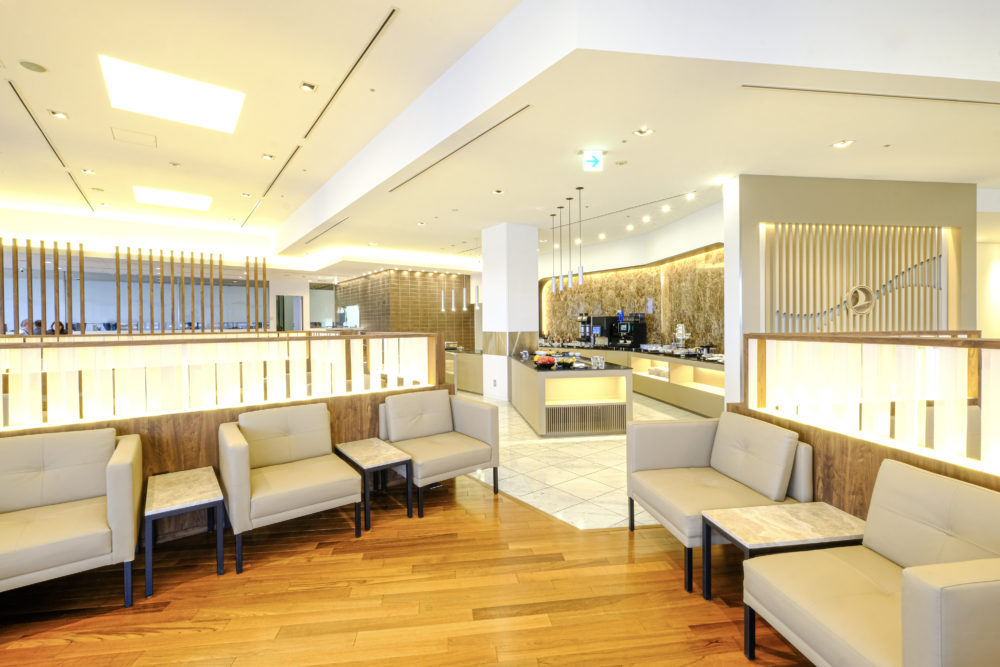 ラウンジにはソファ席のほか、ビジネスパーソン向きのカウンター席、シャワールームや授乳室、男女別の礼拝室も完備。