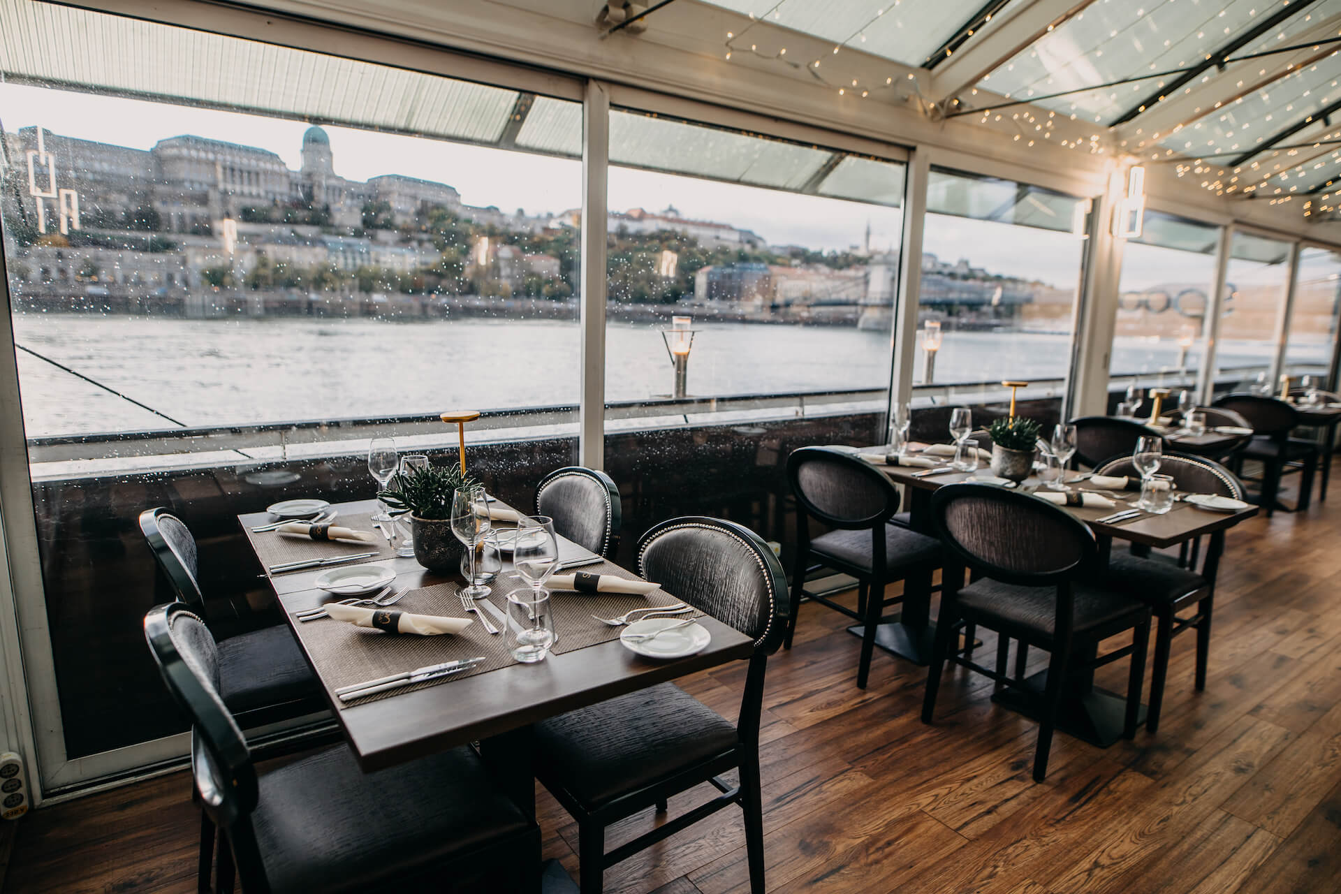 船上レストランはドナウ川から王宮の丘を眺められる絶好のロケーション。