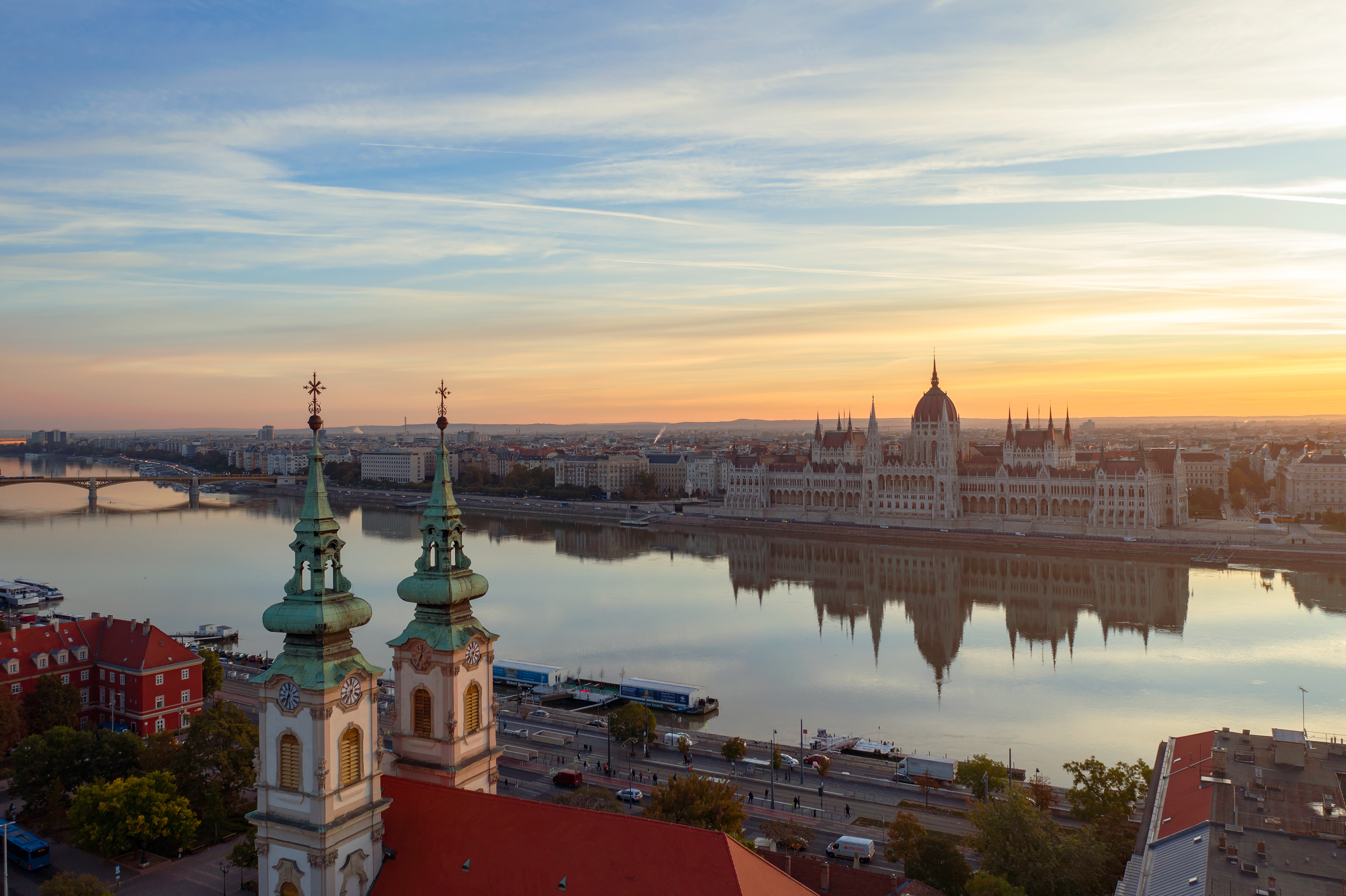ドナウ川の向こうに見える国会議事堂もまた、この都市のランドマークのひとつ。