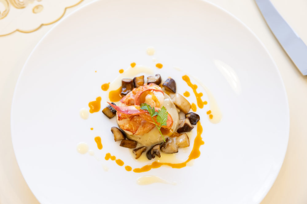 続いて、オマール海老のポワレとシャンピニオンのフラン。ワインはBouchard Père & Fils Montagny 1er Cru 2016が寄り添い、その柔らかな余韻が料理の旨味を静かに引き立てていた。