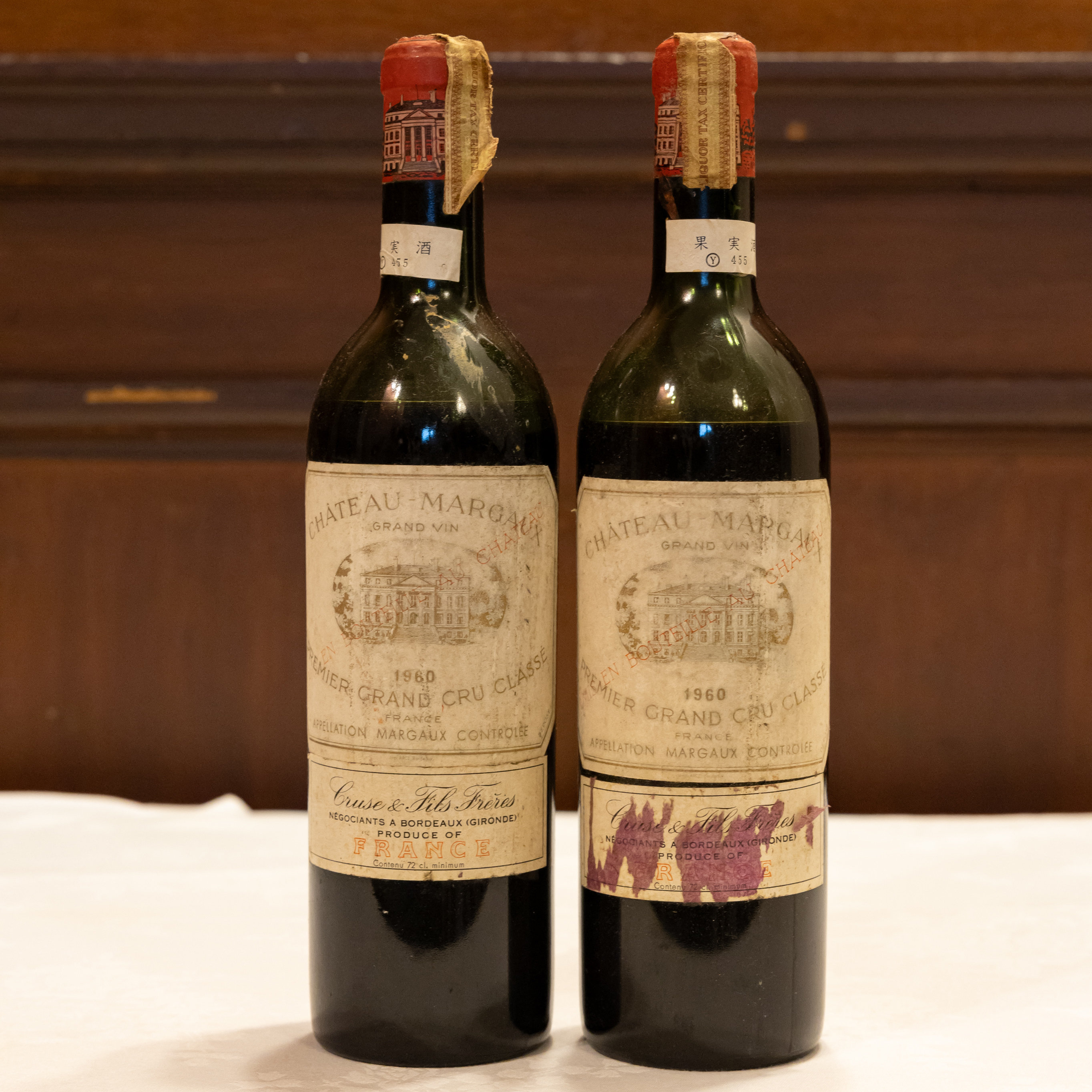 楽しい食後のざわめきのなか、ソムリエが再び姿を現した。その手にあったのは、なんと Château Margaux 1960。