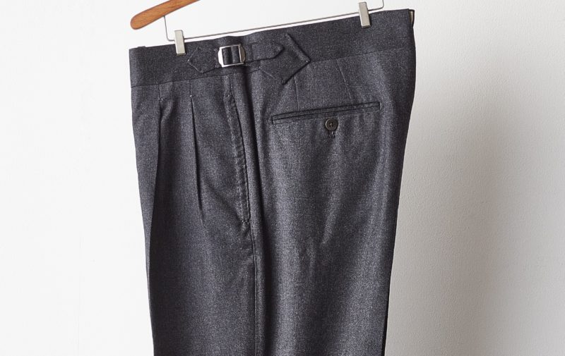 「3つ目は、ネイビー・チョーク・ストライプのフランネルです。私の古い友人が着用していたスーツにインスパイアされたものです。彼はイタリアのシャツ生地メーカーに勤めており、生涯を通じてこの産業で働いています。実際、彼のスーツは父親から譲り受けたものでした。非常にリッチな質感のあるファブリックに、控えめなストライプが効いていています。そのスーツを見た時から、いつか自分たちのバージョンを作りたいと思っていました」