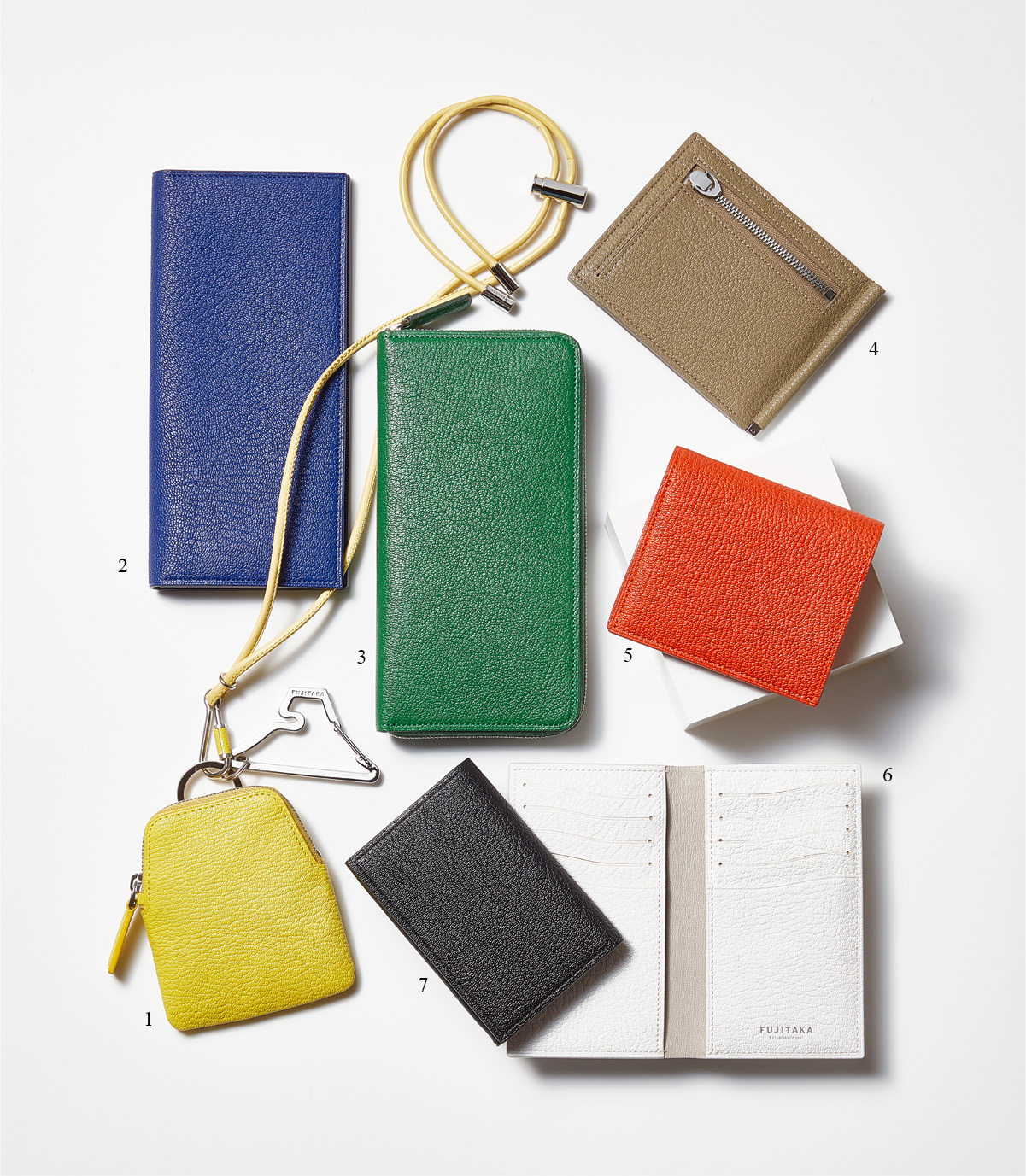 1.マルチケース「No.677608」W9×H9.5×D1cm ¥28,600、2.かぶせ長財布「No.677605」W19×H9×D1cm ¥66,000、3.ラウンドファスナー長財布「No.677606」W18×H9×D1.5cm ¥79,200、4.マネークリップ「No.677603」W11×H9×D1.5cm ¥49,500、5.二つ折り財布「No.677604」W9×H9.5×D1.5cm ¥52,800、6.カードケース「No.677602」W7.5×H13×D1.5cm ¥49,500、7.名刺入れ「No.677601」W10.5×H7×D2cm ¥28,600 all by Fujitaka