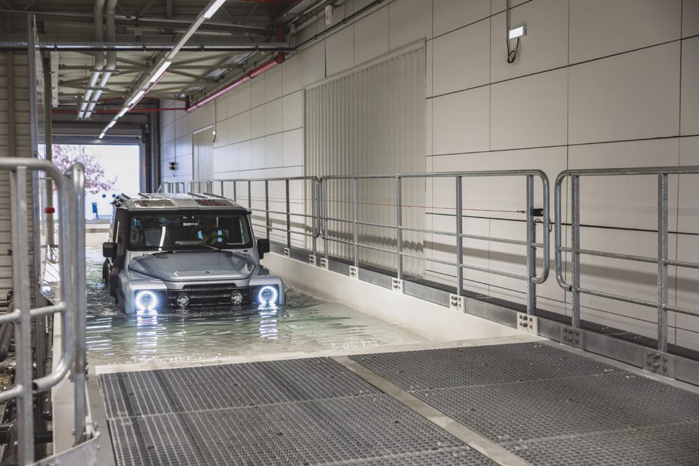 フランス、ハンバッハに位置する元スマートを製造していた工場で水深テストを受けるグレナディア。