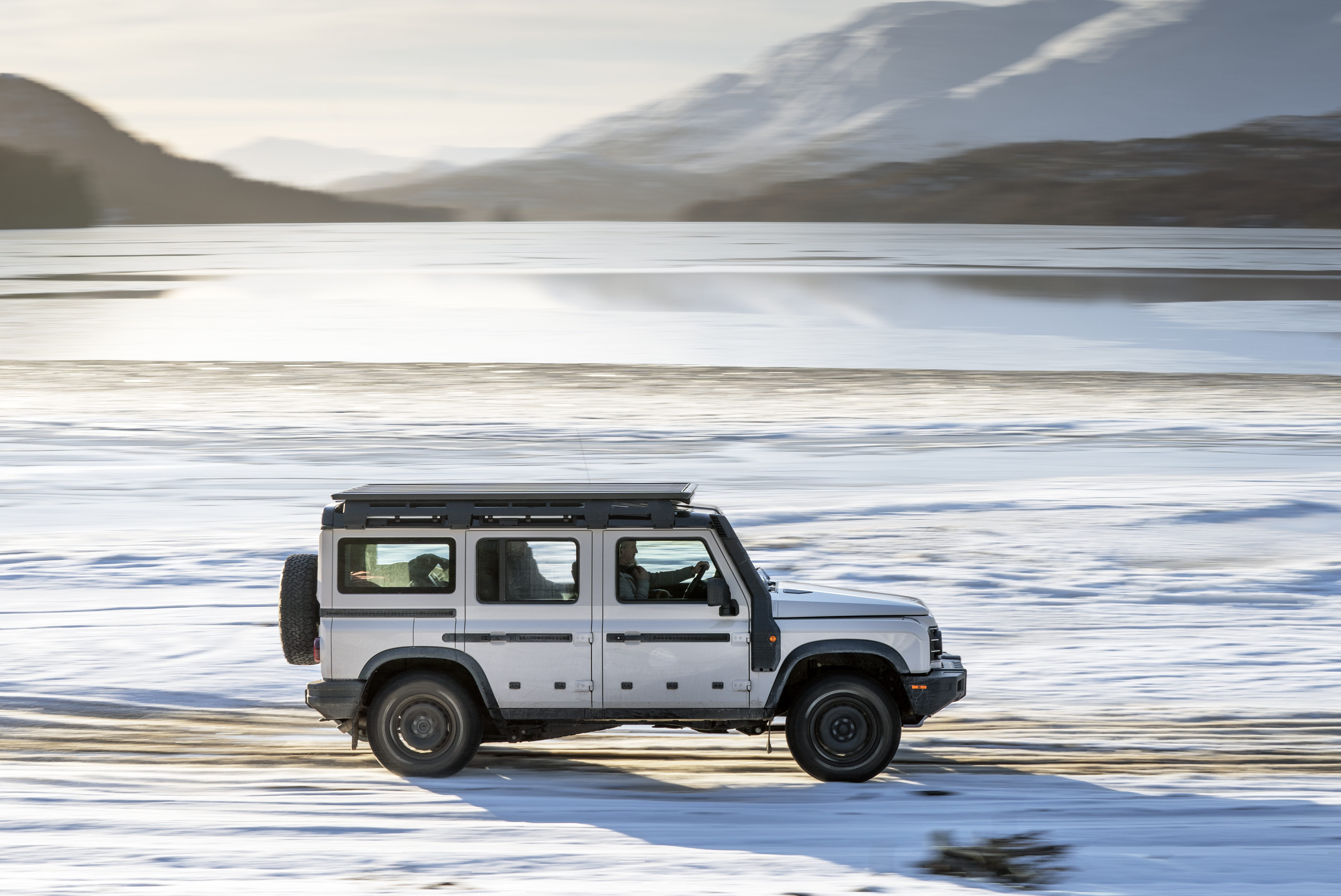 グレナディアの発表イベントは、スコットランド最北端のメイ城から、プロジェクト発案の地であるロンドンのパブまで、リレー形式で走破するというものだった。私はインヴァネスからグラスゴーまで、厳寒の中を走る第二区間に参加した。そしてこのクルマが雪や氷の過酷な環境をものともしないことを実感した。