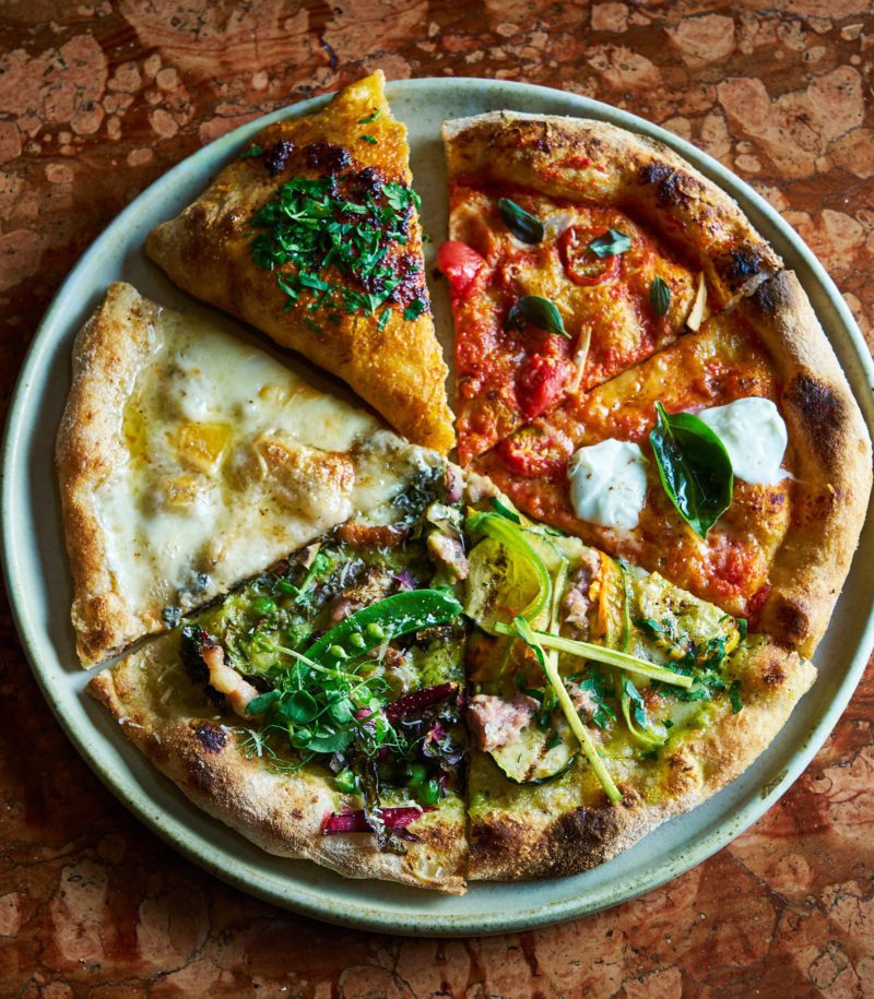 マンダリン オリエンタル 東京で最も予約が困難といわれる「ピッツァバー on 38th」は、「50 Top Pizza Asia-Pacific」で3年連続1位に輝いた名店。同店では、目の前で焼き上げられたピッツァを、おまかせスタイルで1ピースずつ楽しめる。生地はイタリア産オーガニック小麦粉にごく少量のイーストを加え、水分を含ませたあと48時間じっくり熟成。軽やかな食感に仕上げている。