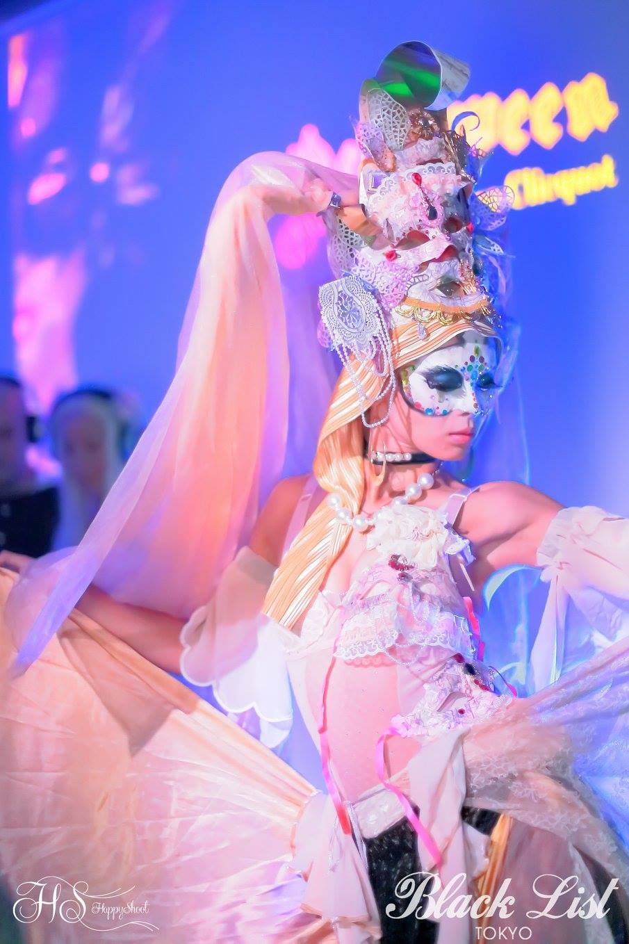 仮面をつけて、ダンサーやDJによるパフォーマンスとともに盛大に年越しを。