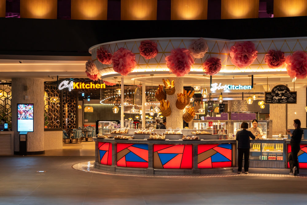 家族連れにオススメしたいのが、「シェフズキッチン(Chef’s Kitchen)」と「スプラッシュベイ(Splash Bay)」である。まずシェフズキッチンは、朝食が楽しい。ライブキッチンが6つあり、目の前で仕上がる料理がある。卵料理のような定番をその場で作ってもらえる一方で、和食、洋食、中華、韓国料理に加えて、ベトナムのフォーのような麺まで揃う。