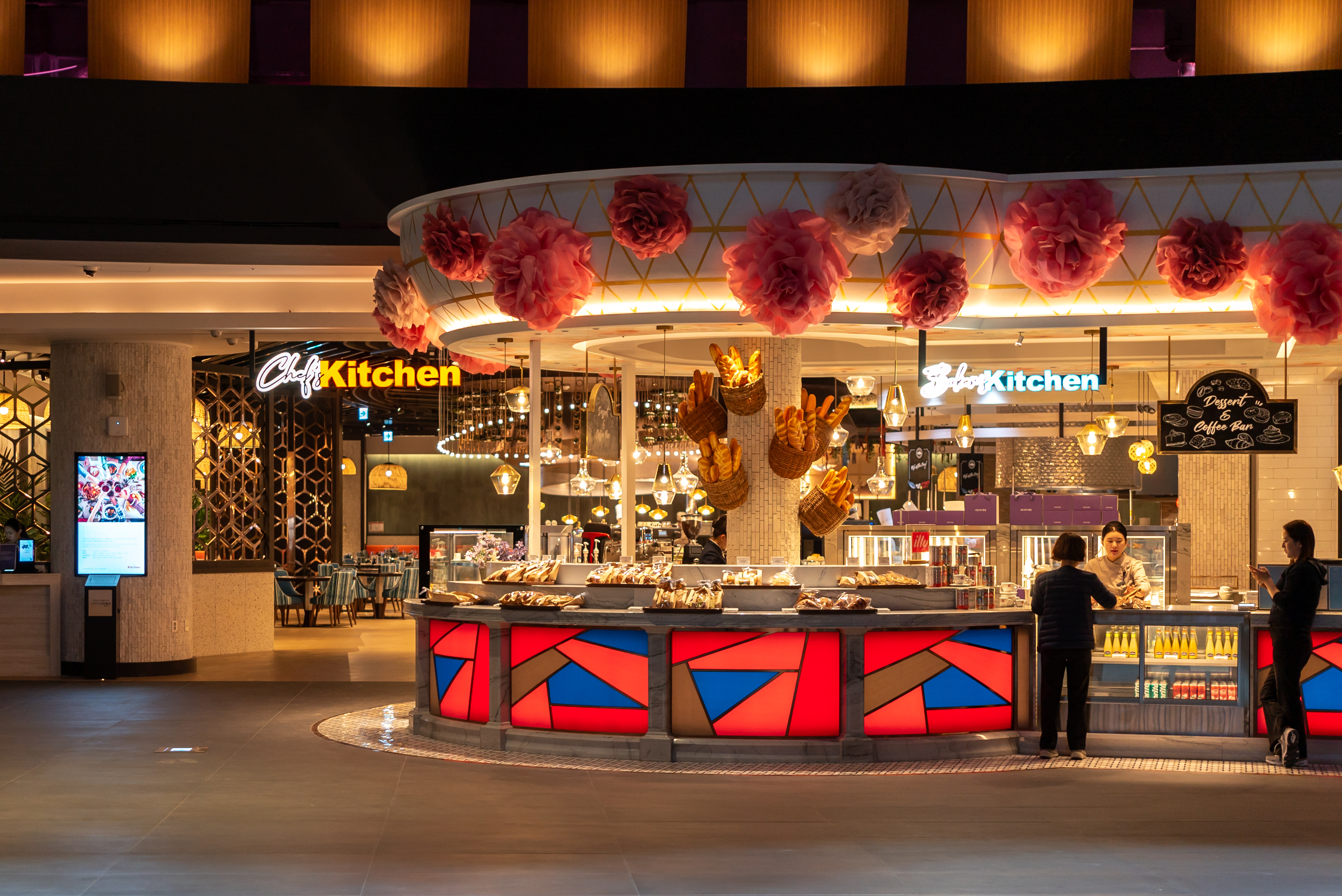 ところで、インスパイアはデジタルアートに相当力を入れており、館内を散策するだけで気分が切り替わるよう工夫されている。その象徴が「オーロラ(Aurora)」だ。長い通路そのものが巨大なLEDの映像空間になっており、カジノやレストランへ向かう移動が、そのまま軽いショーになる仕組みだ。シーズンの演出(冬ならサンタ村やオーロラ風の映像)も入り、リゾート全体の熱を上げる役割を担っている。