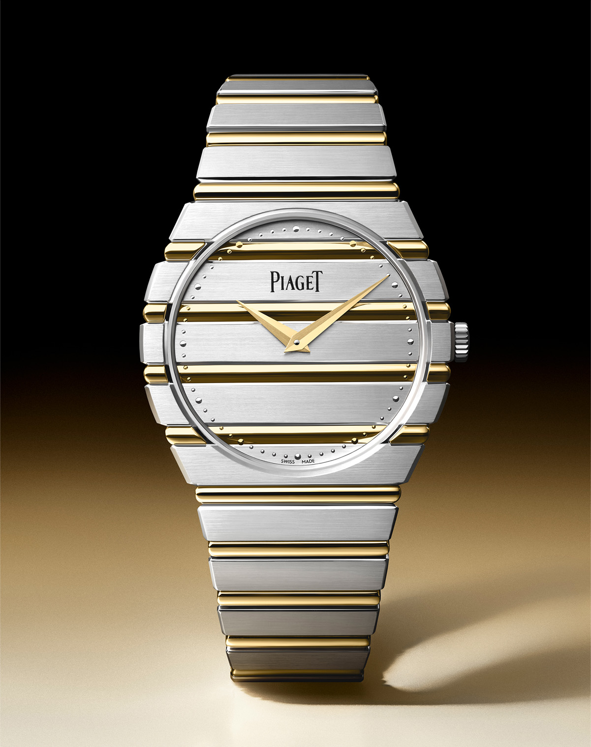 ピアジェ ポロ 79 ツートーンピアジェらしい復刻で話題となったモデルの新作はツートーン。ホワイトゴールドのケースとブレスレットに、イエローゴールドのゴドロン装飾が美しいコントラストを描く。厚さ 2.35mmの自社製薄型自動巻きムーブメント、キャリバー 1200P1を搭載し、格調高い輪郭と快適な装着感を実現。貴金属で時を測るというメゾンの哲学を具現化した一本だ。自動巻き、18KYG&18KWG ケース、38mm。¥15,400,000 Piaget