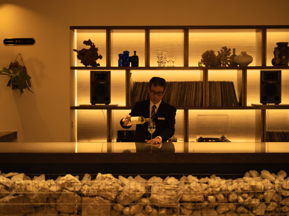食後はロビーの一角にあるラウンジバー「汐待ち」がオープン。