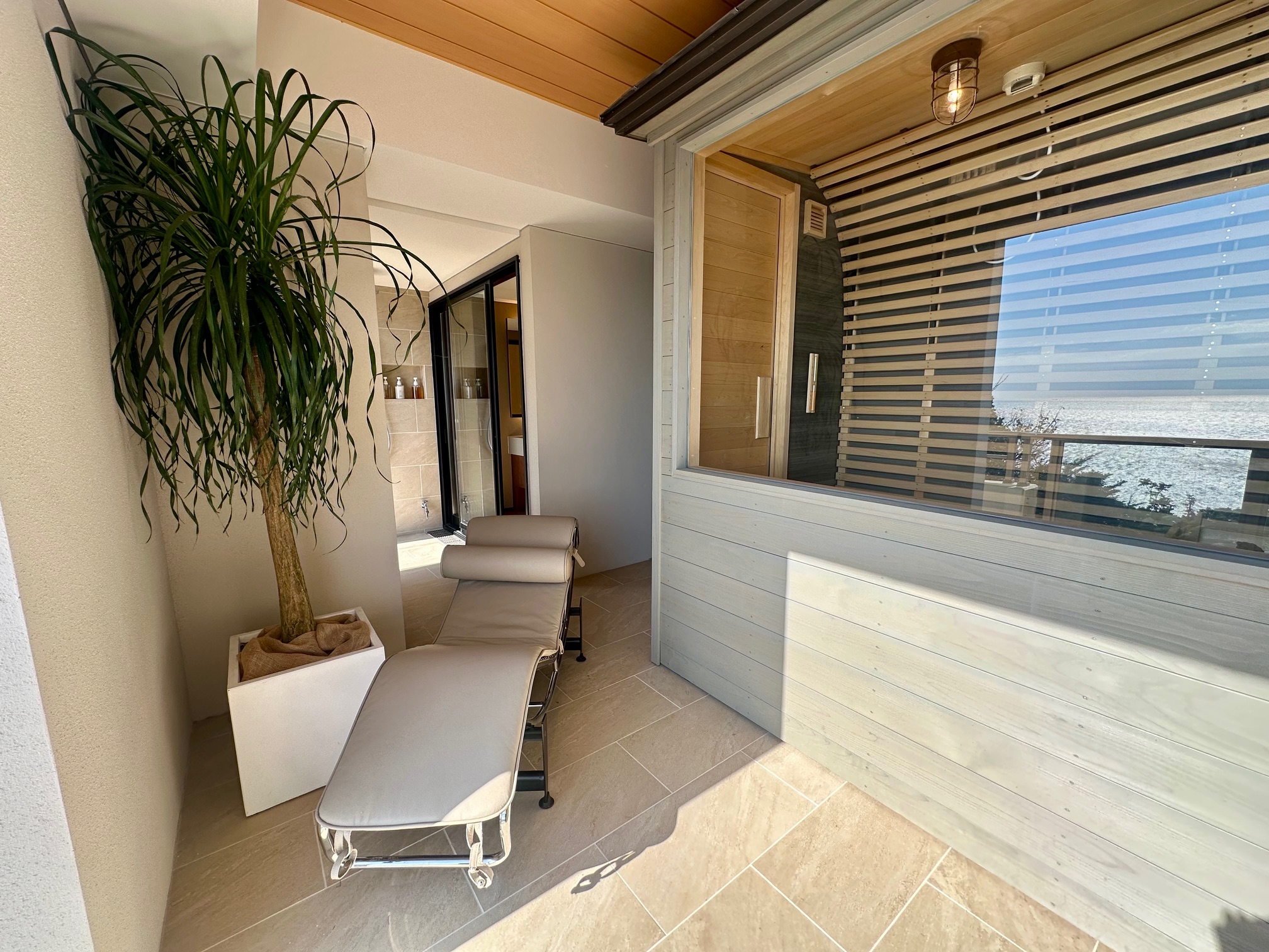 「コーナースイート」のテラスには、サウナと外気浴に最適なカウチが備わる。