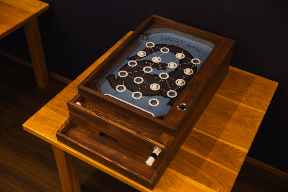 スマートボールやレトロなボードゲームなどが置いてあるゲームラウンジ「浪間」。