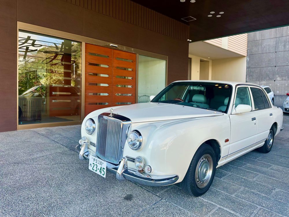 東京からは踊り子号で約2時間。最寄りの伊豆熱川駅からホテルまでは徒歩10分と好アクセスの場所にある。駅への到着時間をあらかじめ伝えておくと、1990年代のクラシックカーである光岡の「ガリューI」が出迎えてくれる。かつての名車を再生した車両で、駅に着いた瞬間からノスタルジックな世界観に没入できるため、ぜひとも利用したい。