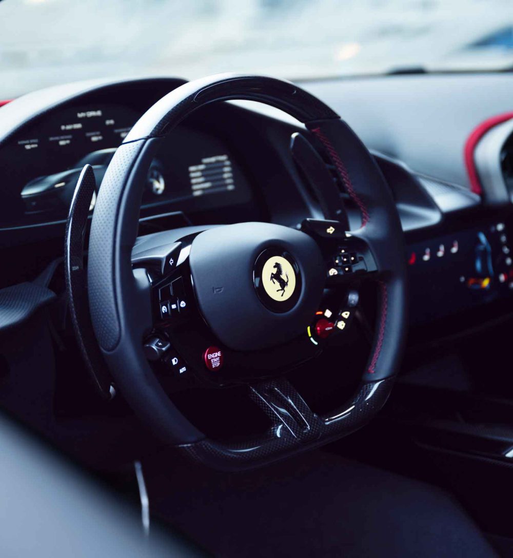 それでいて、走りに抜かりがないのは言わずもがな。エンジンは数々の受賞歴があるF154ファミリーから派生した進化型で、フロントミッドに積まれた3.9リッターV8ツインターボは最高出力640cvを発揮する。最大トルク760Nmと共に、完全にスーパーカーの領域だ。最高速度は320km/h、0-100km/h加速は3.3秒なのだから何の疑いはない。物理スイッチとして復活したステアリング上のスターターボタンを左手の親指で押せば、強靭な心臓が目を覚ます。