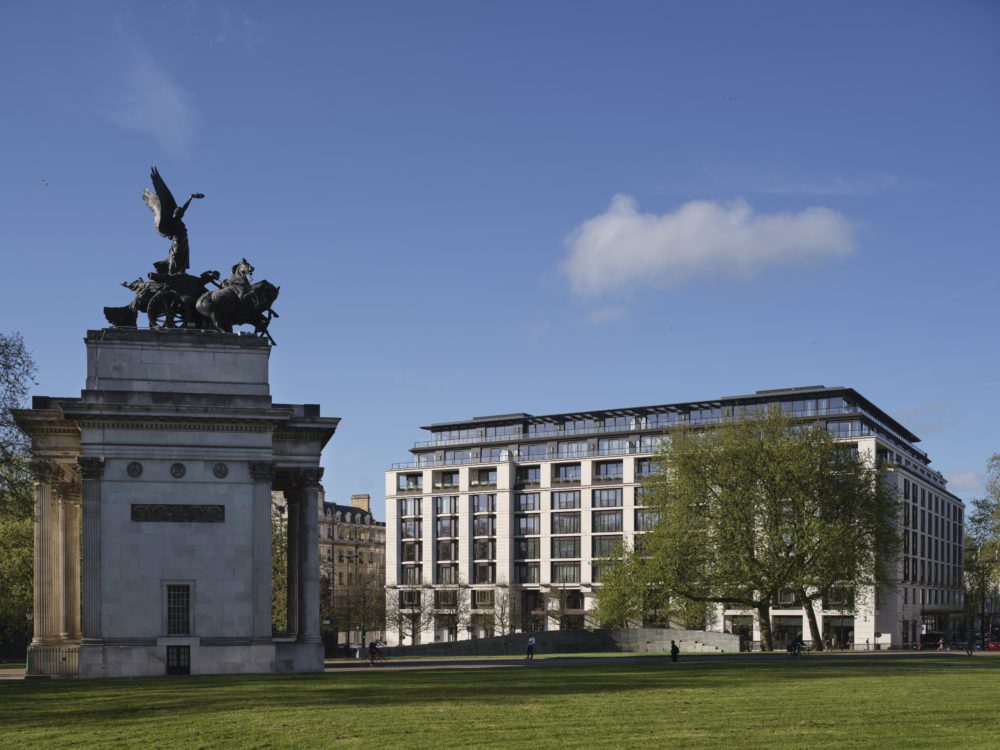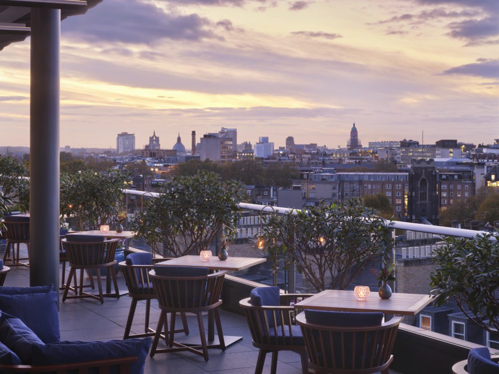 場所はハイドパークの目の前、ウェリントンアーチのすぐ近く。ルーフトップのバーやダイニングからはロンドンの街並みを一望することができ、昼も夜もそのパノラミックな景色に息を呑む。