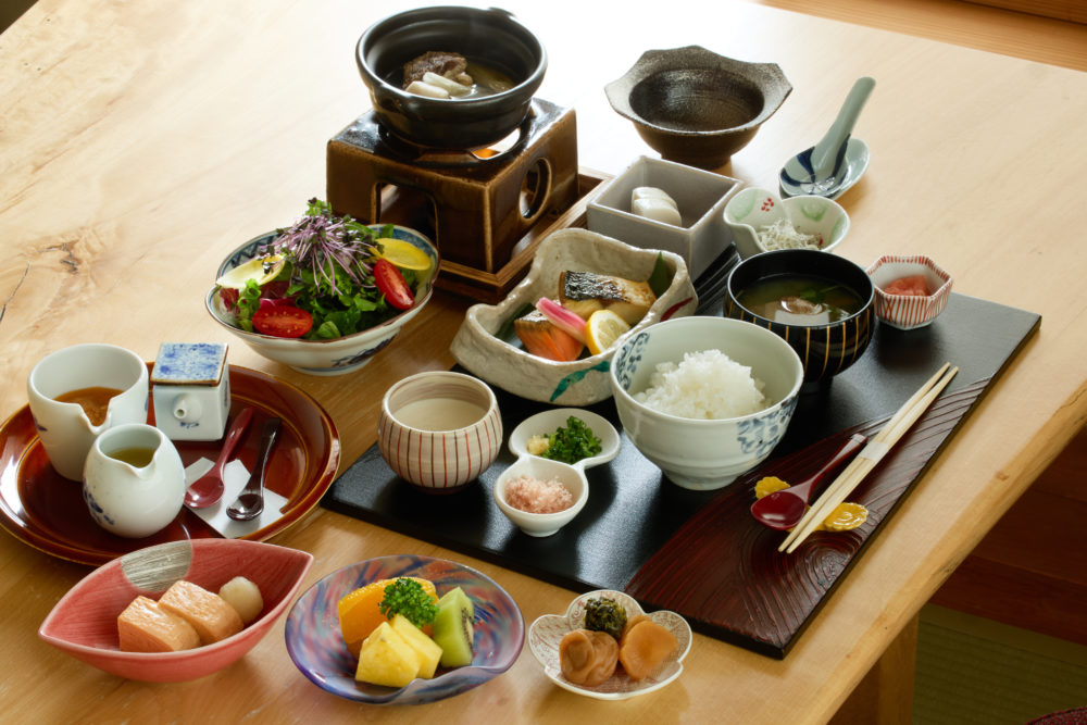訪れた日には、炊き立てのご飯に、ついさっきまで目の前で焼かれていた魚に、牛の首の部分のお肉を圧力釜で1時間ほど調理して柔らかく仕立てた小鍋、さらにはつくりたての鰻巻きなど、朝から本格的な割烹スタイルでの提供で、贅沢この上ない時間となった。また、削りたての鰹節とわさびをはじめ、新鮮野菜のサラダや青森県産本マグロのユッケ、そしてもちろんかまぼこや明太子といった定番も抜かりなく、何度もご飯をおかわりしてしまうようなラインナップだった。唯一のアドバイスとしては、起床後にもしっかり温泉に浸かって、お腹にはたっぷりと余裕を持たせておくように、だろうか。