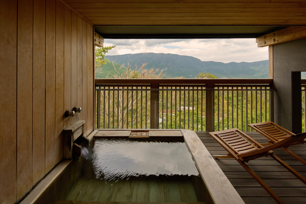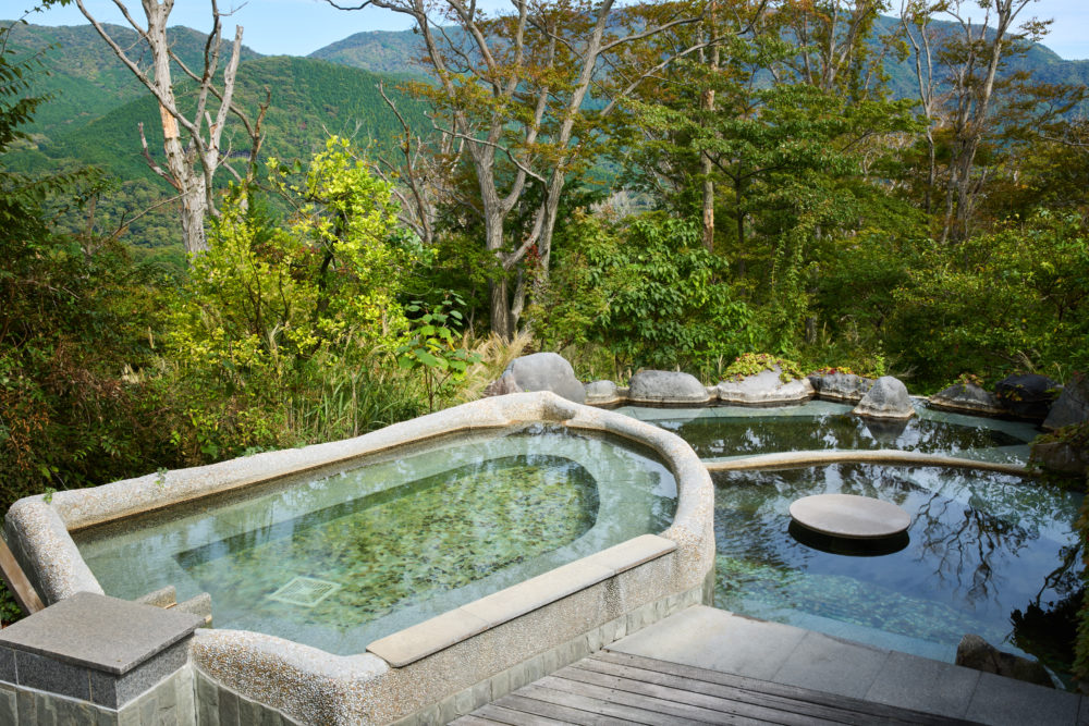 大浴場は、男女ともに内湯ひとつと露天風呂3つ。露天風呂は豊かな木々に囲まれていて、目の前には箱根連峰を望むことができるため、まるで森林浴をしているような気分になる。開放的な気分を味わえる広々とした露天風呂は、旅の醍醐味のひとつとして一度は必ず利用したいと思うのは私だけではないだろう。